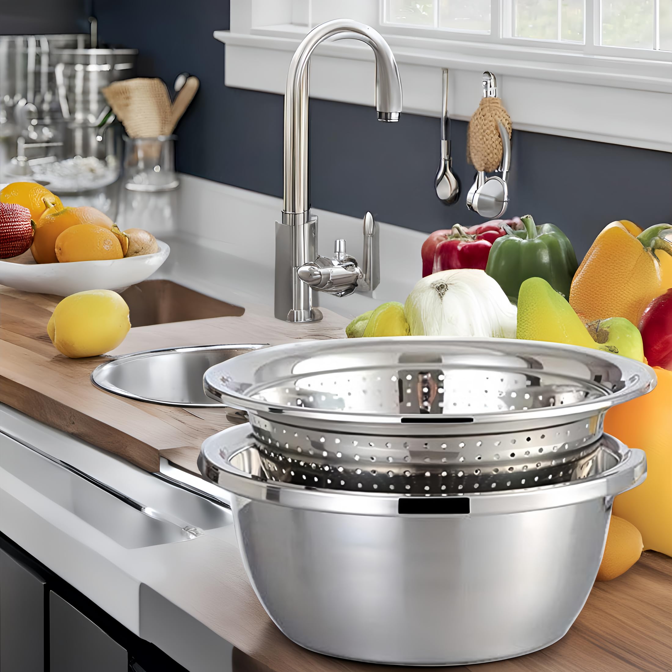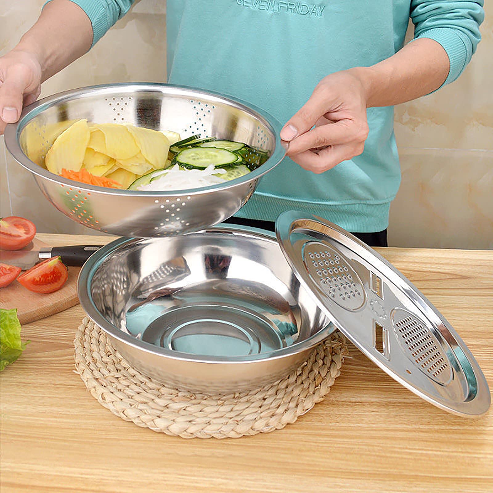 Bol de cuisine 4 l avec passoire Kassel 93701 De plus, la conception du sol plat empilé permet d'économiser de l'espace et de garder votre cuisine bien rangée. Bol Multifonction Cuisine Lavage Légumes Riz Gadget Passoire De Cuisine En Acier Inoxydable, Panier, Filtre,panier égouttoir Salade Riz Légumes Il possède une base amovible, une poignée et un bec verseur pour une utilisation facile. Panier À Riz En Acier Inoxydable Passoire En Acier Inoxydable Panier De... Bol inox, Saladier en acier inoxydable - Bol mélangeur 26 cm Fiche... Mieux encore, il peut être empilé pour encore plus de commodité et gagner de la place. Utilisez-le pour les légumes et le fromage, les aliments cuits, les pâtes, le riz et bien plus encore. Utilisations polyvalentes : l'excellent bassin multifonctionnel allemand en acier inoxydable permet d'égoutter la charcuterie, les pâtes, les légumes, le riz et les fruits en un d'œil, et est livré avec un accessoire de râpe pour râper sans effort le fromage et les légumes. Longue durée : ce bassin multifonctionnel allemand en acier inoxydable peut être utilisé pour laver, mélanger, égoutter, stocker et bien plus encore. Passoire Avec Bol De Cuisine En Acier Inoxydable : maximisez l'espace de votre cuisine avec notre lavabo multifonctionnel allemand en acier inoxydable. Taille du produit : (voir l'image pour plus de détails)A : 26 cm/10,24 poucesB : 28 cm/11,02 poucesMatériel: acier inoxydableListe de colisage:1 x bassin multifonctionnel allemand en acier inoxydableNote:1., En raison des différents effets d'affichage et d'éclairage, la couleur réelle du produit peut être légèrement différente de la couleur montrée sur l'image., Merci!, 2., En raison de la mesure manuelle, un écart de mesure de 1 à 3 cm est autorisé.