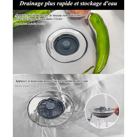 Anti-colmatage évier Évier De Cuisine Passoire Et Bouchon Combo - Universel 3 En 1 Coquille En Acier Inoxydable Avec Passoire Anti Colmatage Installation Facile Pour Un Trou Devier De 70 75mm 92393553 Vidage Rapide évier OXO Grille de protection et d’écoulement en silicone, grise, taille unique Passoire,Bouchon de bain universel Anti-colmatage, outils de cuisine... Le système Valve de vidange escamotable permet un usage pratique : une simple pression suffit pour alterner entre rétention d’eau et vidange rapide. Nettoyez régulièrement le filtre pour garantir une hygiène optimale. Non adapté aux ouvertures d’évier non standards ou supérieures à 90 mm. Caractéristiques Ce Cuisine Passoire et Bouchon Combo 3 en 1 est conçu pour garder votre évier propre et fonctionnel. 【3 en 1 pratique】Combine Bouchon évier Cuisine, Filtre évier et obturateur, offrant rétention d’eau, filtration et isolation des odeurs 【Pop-Up amélioré】Valve de vidange escamotable avec ressort : une simple pression suffit pour basculer entre stockage d’eau et vidange rapide 【Compatibilité universelle】Convient aux éviers Ø7,5–8,7 cm, installation sans outil, idéal comme 3 en 1 Filtre pour Évier de Cuisine Passoire Bouchon De Vidange Universel Lavabo Évier Prise Universelle...