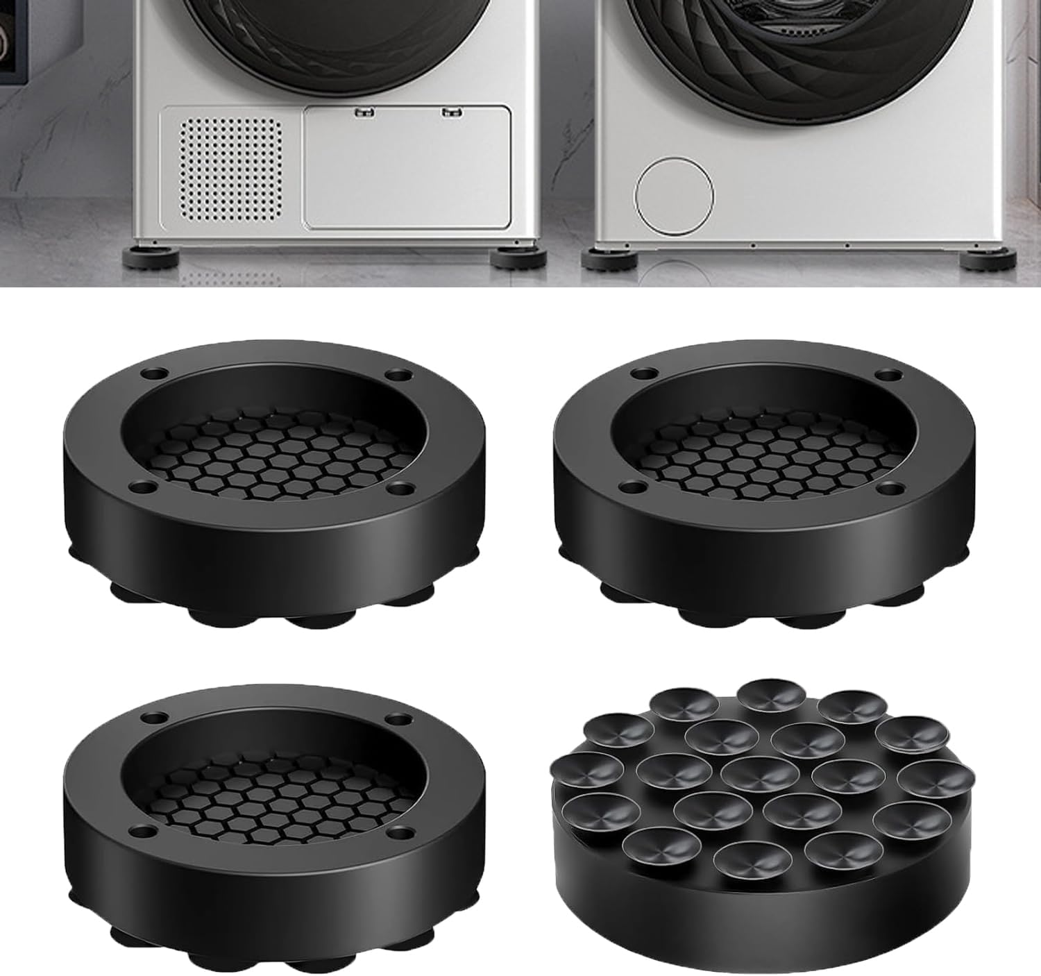 Gwolf Tapis Anti Vibration Machine a Laver 4 pièces Anti Vibration Machine a Laver - empêcher Le Les bords surélevés évacuent l’excès d’eau, tandis que le fond texturé assure une prise en main sûre et équilibrée de votre appareil. Support Anti Bruit électroménager Sol Dur 4 Pièces Anti Vibration Machine A Laver,Patins Anti Vibration– Amortisseurs Antivibration – Support Machine à Laver Sèche-Linge Universel Meuble Machine à Laver Base rainurée pour une meilleure adhérence : La conception à rainures profondes assure un ajustement parfait aux pieds de la machine. Adaptés aux lave-linge, sèche-linge, réfrigérateurs, meubles de rangement et même aux lave-vaisselle, ils améliorent la stabilité des appareils du quotidien et les aident à rester stables sur les sols durs ou les surfaces carrelées lisses LouMaxx Tapis Anti-Vibration pour Machine à Laver - Lot de 4 Pièces 10cmx10cm - Mousse Antibruit Machine à Laver – Épaisseur 1,5 cm. Fabriqué en Allemagne, pour Tous Les Lave-Linge et Sèche-Linge Aucun outil requis : fixation rapide et facile de votre appareil. Installation facile : Diamètre extérieur : 62 mm (2,44 pouces), diamètre intérieur : 45 mm (1,77 pouce), hauteur totale : 14 mm (0,55 pouce). Convient au carrelage, au béton, au bois, au vinyle, au linoléum, à la pierre, aux moquettes à poils ras, etc. Leur conception flexible réduit les frottements tout en assurant la stabilité et la ventilation de l’appareil. Soulevez simplement chaque coin du lave-linge et glissez un patin sous chaque pied. Matériaux haut de gamme : Fabriqués en silicone et plastique durables, les patins anti-vibrations pour lave-linge sont souples et suffisamment résistants pour résister à l’usure quotidienne.