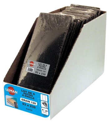 Lot de 5 Patins Maille Carbure-Silicium G120 225 mm Gris - 2287000... Perforation maille multi aspiration: évacuation optimum de la poussière. Abrasif carbure de silicium: adapté au ponçage du bois, bois peint, métal, plâtre., 2x plus rapide , 2x plus résistant Abrasif Longue Durée Déstock - Sidamo - Blister De 10 Patins Corindon Non. Perf. 115x280 Gr.120 Pour Ponceuses Abrasifs Durables Ponceuse à Pinces La maille permet une meilleure évacuation de la poussière. Pour le décapage, ponçage de bois, peinture, plastique, métal. Grain corindon pour un ponçage sur machine ou manuel. Tableau caractéristiques. Type de produit... Feuilles abrasives pour ponceuse vibrante à pinces. 8 Patins ponceuse perforé type B 115 x 280mm grain 120 BRICORAMA | Les