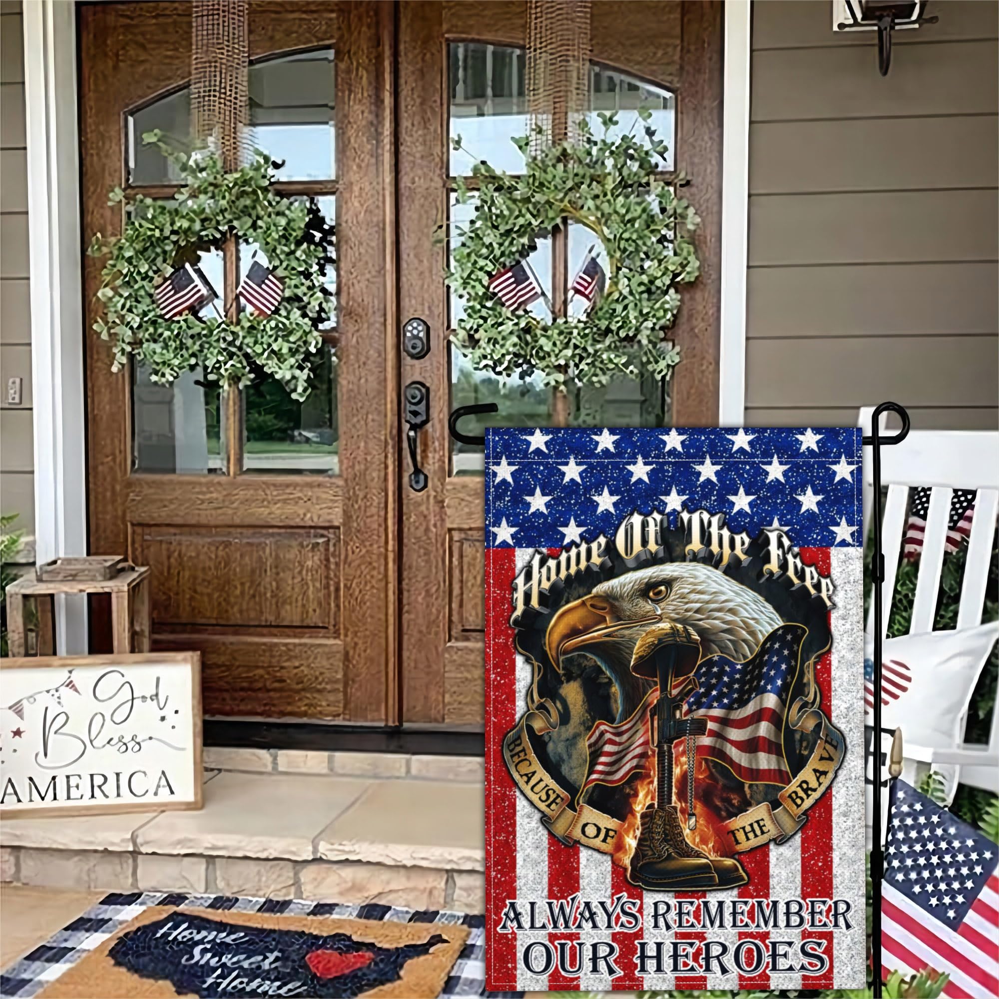 Dyrenson Drapeau de jardin patriotique double face pour extérieur du 4 juillet, « Land of the Free Because of The Brave House », 9/11 décorations... Décoration de panneau de porte en bois patriotique pour le jour de l... Impression D'art Patriotique Drapeau Américain, Décoration Du 4 Juillet (téléchargement Numérique) - France Jour Commémoratif Du Souvenir Et De L'honneur Illustration Vectorielle Drapeau Americain Au Soldat Meritoire 146764388