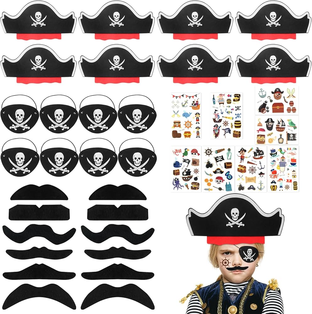 Enfants Jouant L'aventure De Pirate Sur Le Radeau En Bois Image stock 【Imprimés uniques】Ensemble d'accessoires de pirate avec des motifs d'épées croisées et de crânes imprimés. Chapeau Pirate JOYUE 36 Pcs Cadeau Anniversaire Pirate Enfants, Ensemble Pirate Enfant Jouets De Pirate Cadeaux Cache Oeil Pirate Enfant Flexible et durable, réutilisable, respectueux de l'environnement, il convient aussi bien aux adultes qu'aux enfants Chapeaux Pirate tête de mort pour déguisement 1Pc nouveau gonflable épées hache enfants jouets Pirate épées enfants... 【Large application】Ce chapeau de pirate contient de nombreux éléments et convient à de nombreuses fêtes, comme les fêtes sur le thème des pirates, les fêtes de Noël et d'Halloween. L'imprimé est clair et ne s'estompe pas facilement, ce qui lui confère un look très cool et original. Il peut également être utilisé pour réaliser des jeux de rôle et vivre une expérience passionnante de chasse au trésor 【Ensemble de décoration pirate】Cet ensemble de chapeaux de pirate pour enfants comprend 4 chapeaux de pirate, 4 masques pour les yeux et 10 tatouages autocollants. 【Confortable à porter】Les accessoires d'anniversaire pirate pour enfants sont épais, doux et agréables pour la peau, et sont fabriqués à partir de matériaux de haute qualité. Avertissement De Sûreté 0
