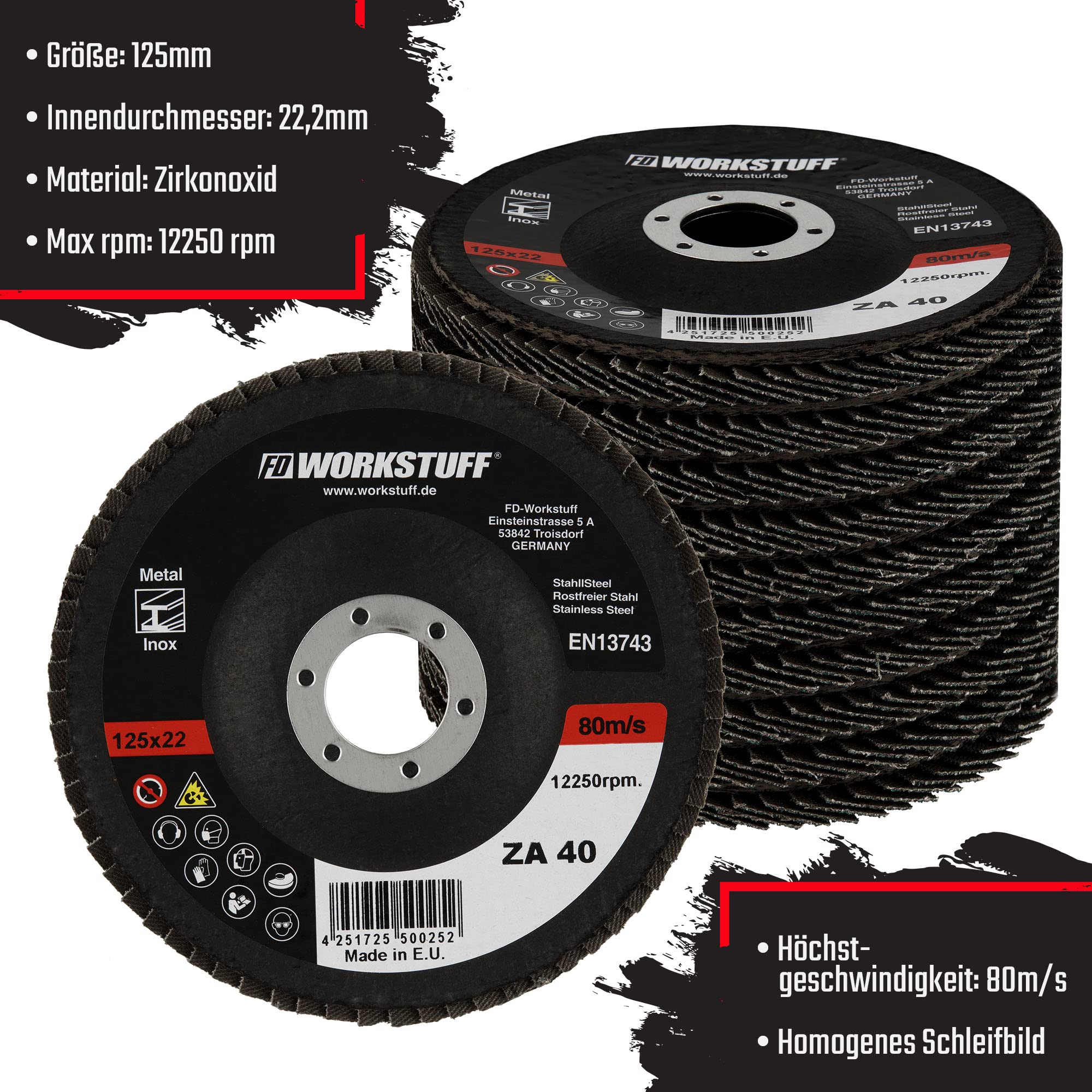 DISQUE LAMELLE 125*22,2 Z120 POUR INOX LAMELFLEX 20 Pcs Disque à Lamelle 125mm, Disques Abrasifs à Lamelles Grain 60, Disques a Lamelles en Acier, Disque de Décapage pour Enlever Ebavure, Polissage, Rouille, F Spécification: ébarrage Finition Surface Disque Bois Meuleuse 125 MIVIDE 15 Pcs Disques à Lamelles 125 Mm Grain 40, Disques Abrasifs à Disque Meuleuse Disque Polissage Rouille Grain 120 Des disques abrasifs à lamelles de haute qualité sont bien abrasifs, moins sujets à l'usure et ont une longue durée de vie. Lot de 8 disques abrasifs à lamelles,Disques abrasifs à lamelles, 76 mm x 10 mm Grain 40-60-80... MIVIDE 20 Pcs Disque à Lamelle 125mm, Disques Abrasifs à Lamelles Grain 120, Disque de Meulage en Acier, Disque de Décapage pour Enlever Ebavure, Polissage, Rouille, Finition : : Commerce, Industrie et ScienceÀ propos de cet article Contenu de la Livraison : Vous recevez 20pcs disques à lamelles 125 mm pour métal, fer, bois ; diamètre : 125 mm, trou 20 x Disque à lamelle 125mm - Matériau: Corindon de zirconium, - Couleur: Bleu, - Diamètre: 125 mm Matériau : Fabriquées en corindon de zirconium avec des disques abrasifs de haute qualité de 125 mm pour éliminer les bavures, polir, enlever la rouille, ne s'usent pas facilement, longue durée de vie. Disques à lamelles de haute qualité, idéaux pour l'ébarbage, le polissage, la prévention de la rouille et la finition. - Diamètre intérieur: 22mm, - Grain: 120, Le forfait comprend: Description du produit MIVIDE 20 Pcs Disque Lamelles 125 mm, Disques Lamelle, Disques à Lamelles Bleu, Disque de Ponçage à Compartiments pour Métal, Fer, Bois