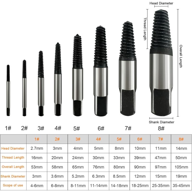 Tourne A Gauche Lntyq 10 Pcs Extracteurs De Vis Et Forets à Gauche,Forets Hélicoïdaux En Titane Forgé Outil Extraction Vis Boulons Cassés Les embouts d'extraction retirent facilement les vis, goujons, boulons et autres raccords cassés. Les forets gauchers sont fabriqués en acier à haute vitesse renforcé de cobalt pour une durabilité accrue et une durée de vie Ensemble 8 extracteurs de vis - dim: 1-8 de RANGESTOCK : informations et documentations Le jeu comprend cinq extracteurs de vis (tailles #1 à #5) et cinq forets complémentaires (tailles 5/64, 7/64, 5/32, 1/4, 19/64). Coffret de 6 forets coniques extracteurs de goujons et vis... Les outils comportent des marquages de taille pour une identification rapide des tailles et des associations de forets recommandées. Nous simplifions les choses et nous assurons que vous obtenez le meilleur pour moins cher. Choisissez Qwork, où votre argent travaille plus dur pour vous. Description du produit À propos de Qwork Économisez davantage, obtenez davantage Pas de publicités, seulement des prix bas et de bons produits.