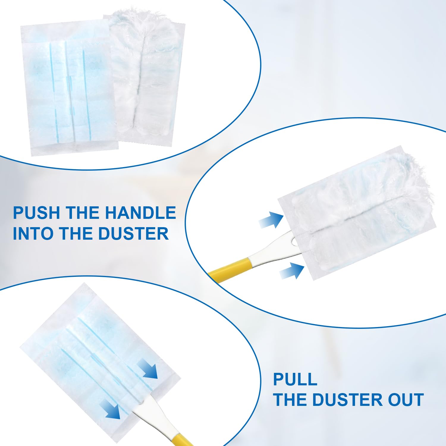 Recharges Plumeau, Kit de Dépoussiérage 3 Plumeau 20 Recharges... Après le nettoyage, jetez simplement le chiffon usagé et remplacez-le par un nouveau sur la poignée. La peluche douce ne raye pas les meubles, ce qui facilite son utilisation., 5., Utilisation:Notre plumeau poussiere magnétique est idéal pour nettoyer les coins, les étagères, les voitures, les stores, les appareils électroniques, les canapés, les plafonds, les fissures murales, les vitrines, les pianos, les claviers d'ordinateur portable, les poils d'animaux, et bien plus encore. Kit Nettoyage Poussière Recharges JJZGPP Duster Kit,40 Pcs Recharges De Plumeaux Jetables Avec Plumeau Jetable Que ce soit sur les sols en bois dur, les tapis ou les surfaces de meubles, il élimine rapidement et efficacement la poussière pour maintenir votre environnement propre., 4., Caractéristiques:Notre duster kit réduit votre charge de travail ménager. Recharges de plumeau électrostatique jetables] Vous recevrez 1 poignée de plumeau pliable bleue et 40 recharges de plumeau. Quantité suffisante pour répondre à vos besoins de nettoyage, compatible avec les plumeaux Swiffer. [Nettoyage Efficace] Le recharges plumeau électrostatique moelleux est fabriqué à partir de fibres de haute qualité. L'électricité statique générée... Cela vous permet de nettoyer facilement les coins sans laisser de résidus. Recharges Plumeau, Duster Kit, Plumeau + 10Recharges, Recharges de