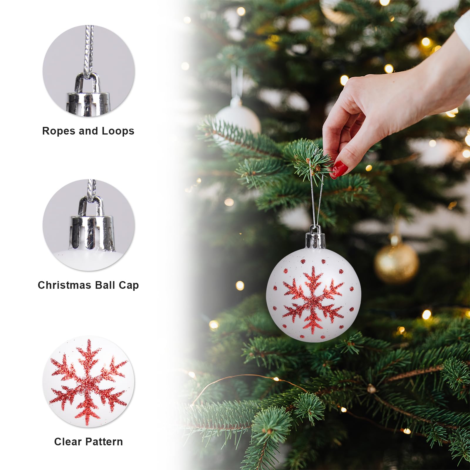 Lot de 42 boules de Noël (D70 mm) Monega Argent - Boule et déco de sapin Couleur : bordeaux, or rouge, vert, or blanc, rouge et blanc. Boules De Noël Incassables 42 Pièces Lot De 42 Boules De Noël Peintes Pour Décorations De Sapin De Noël Boules Noël Incassables Caractéristiques : Nom de la pièce : lot de 42 boules de Noël pour sapin de Noël., Matériau : plastique., Dimensions : voir photo. Facile à utiliser : 1 boîte contient 44 boules de Noël, chaque boule de Noël d'extérieur est livrée avec un crochet amovible, facile à décorer l'ensemble du sapin de Noël Boules de Noël décoratives - Ces magnifiques boules de Noël sont fabriquées artisanalement en plastique de haute qualité, ornées d'éléments scintillants classiques et de paillettes de qualité supérieure, et recouvertes d'un vernis. Incassables, ellessont idéales pour décorer votre maison et apporter une touche festive à votre sapin.Thème de Noël - Nous avons sélectionné avec... Facile à accrocher : le design léger permet d'accrocher facilement ces décorations sur votre arbre ou dans d'autres décorations décoratives sans tracas. Différents motifs : doté de 42 motifs différents, cet ensemble de décorations vous permet de mélanger et d'assortir pour une superbe esthétique de vacances qui se démarque. Utilisations multiples : parfait pour améliorer l'ambiance des hôtels, des restaurants et des rassemblements festifs ; pour créer des moments de vacances mémorables. *Large application : parfaits pour divers environnements, ces ornements peuvent rehausser la décoration des hôtels, restaurants, bureaux et événements spéciaux, ajoutant une touche festive à toute célébration. La sécurité avant tout : fabriqués à partir de plastique, ces ornements incassables offrent une expérience de décoration sûre autour des enfants et des animaux domestiques. * Léger et pratique : chaque décoration est légère et est livrée pour une suspension facile, ce qui rend l'installation et le retrait sans effort pendant la saison des vacances bien remplie.