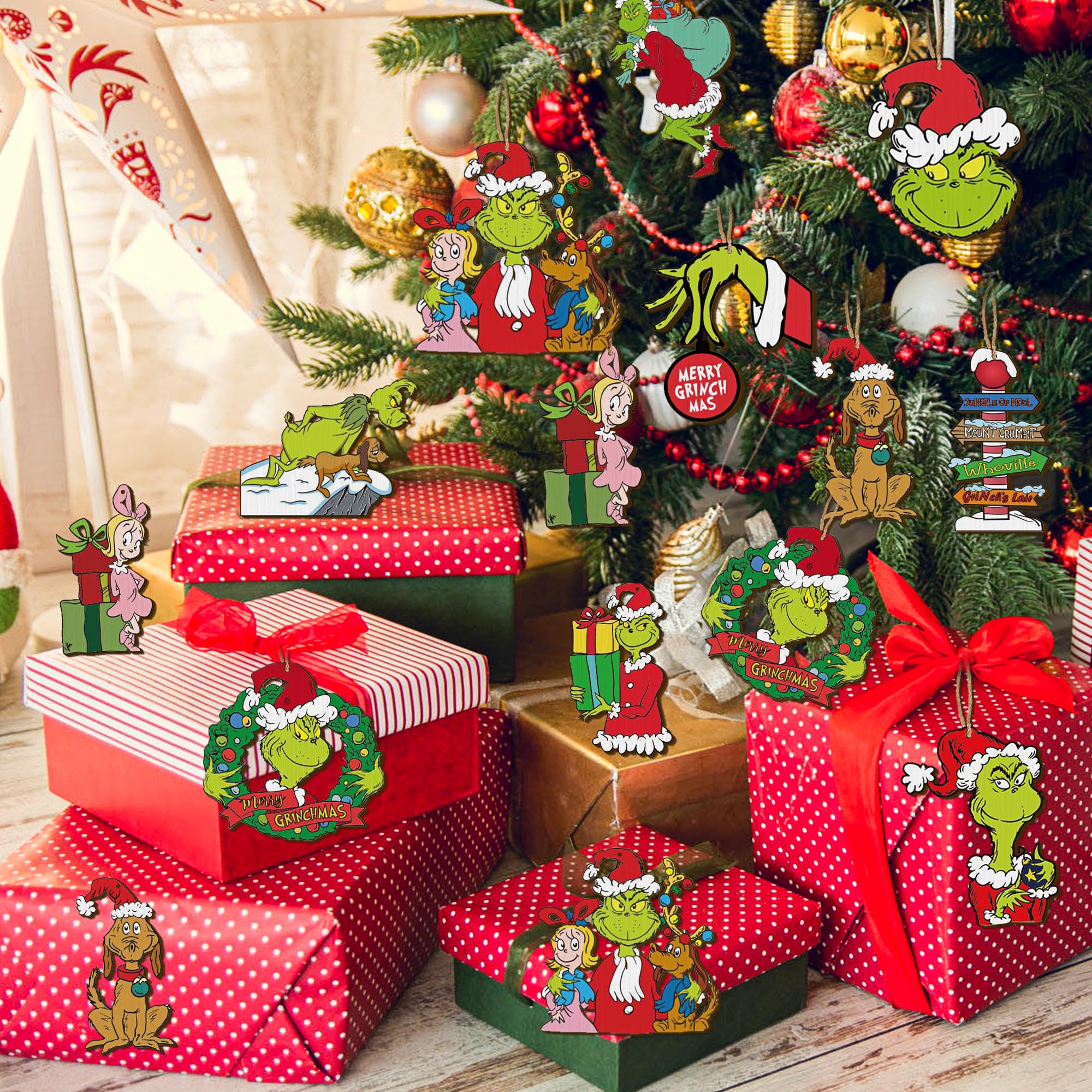 Que ce soit offerts individuellement ou intégrés dans un projet DIY, ces décorations de Noël Grin-ch apportent à coup sûr joie et esprit festif. Votre décoration de sapin de Noël deviendra ainsi un véritable point d’attraction. Decoration Sapin Noel Décoration Maison Décorations Noël Grinch 3D - Pendentifs Résine Pour Sapin - Et Fête Décos Grinch 3D Christmas Decorations Lot de 24 décorations de Noël en bois de 8,1 c - Décoration vintage à... 🎄【Facile à suspendre】Chaque ornement de sapin est doté d’un petit trou et livré avec une ficelle en jute assortie, ce qui permet de l’accrocher facilement à votre sapin, à une couronne ou à une fenêtre. Description du produit Que ce soit pour embellir votre sapin de Noël ou pour offrir un cadeau original, ces décorations de Noël Grinch en bois de haute qualité créent une atmosphère festive et apportent une touche de fantaisie à votre décoration de sapin de Noël. Chaque figurine mesure environ 8 cm et apporte immédiatement une touche festive à votre intérieur grâce à ses couleurs vives et ses détails charmants. Grâce à leur polyvalence, ces décorations de Noël Grinch sont un véritable atout pour embellir vos fêtes de fin d’année. Ces adorables décorations de Noël Grinch créent une ambiance chaleureuse et joyeuse, rendant vos fêtes encore plus originales et conviviales. Caractéristiques du produit 1️⃣ Set de 24 pièces : Ensemble de décorations de Noël Grinch avec différents motifs classiques pour une décoration de Noël créative et variée. 🎄【Utilisation polyvalente】Nos décorations de sapin de Noël conviennent parfaitement à la maison, au bureau, à l’école, dans une boutique ou un restaurant. Spécifications du produit Quantité : 24 pendentifs en bois Matériaux : bois + ficelle en jute Taille : env. Comprend 24 décorations en bois avec 12 designs différents, dont 2 exemplaires de chaque design et une bobine de ficelle. Conçu en bois avec des motifs délicats et des couleurs vibrantes qui ne se décolorent pas, pouvant être réutilisés pour ajouter une touche d'éclat à votre Noël 🎄【Cadeau parfait】Ces pendentifs en bois sont une excellente idée cadeau pour la famille et les amis, ou une touche supplémentaire pour enrichir votre décoration de Noël. Vous pouvez les suspendre aux portes, fenêtres, étagères ou emballages cadeaux. 4️⃣ Utilisation polyvalente : Idéales pour la maison, le bureau, l’école ou les magasins, ces décorations de Noël conviennent à tout type d’espace festif. Noël Décorations Formes en bois Ornements hauteur 26cm (Neu und