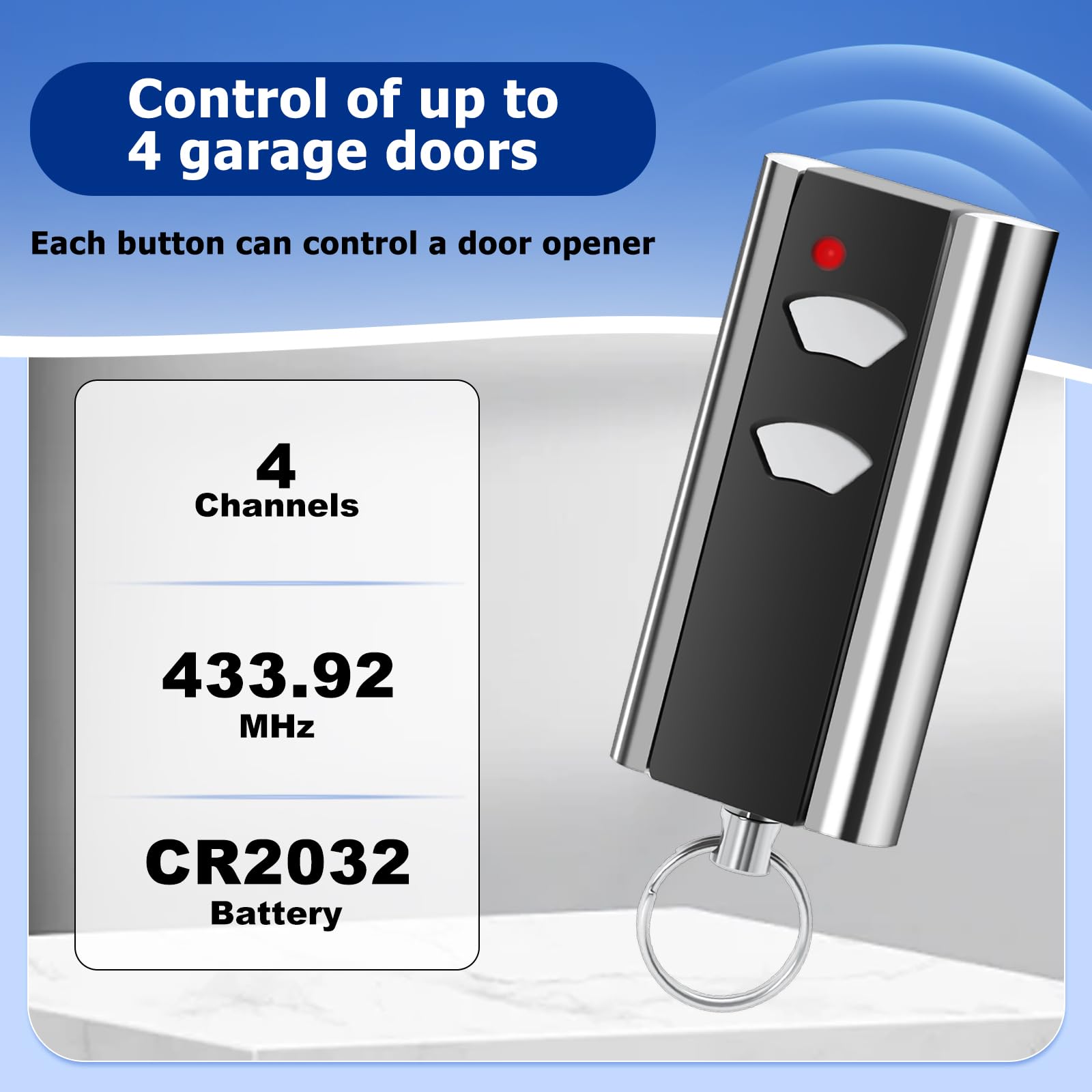 Sécurité Clonage Signal Portail Pepape 2 Pièces Télécommande Garage Pour Normstahl Entrematic RCU 433-4K, RCU 433-2K, EA433 2KM, EA433 2KS, Compatible Avec Crawford Normstahl 433,92 Rolling Code Télécommande Garage Telecommande Universelle Portail Prend en charge 4 portes de garage voyant LED rouge - Cette télécommande peut contrôler jusqu'à 4 ouvre-portes de garage ou portails technologie à code tournant pour protéger l'accès et la connexion de votre maison Garage Door Remote for Ditec-115-1pack 433,92 MHz Garagentor Fernbedienung Handsender für DITEC L'appairage est simple et rapide, ce qui en fait une excellente solution pour remplacer la télécommande de manière pratique. Compatibilité universelle avec Garage Crawford et Entrematic : ces télécommandes sont compatibles avec les modèles de garage Entrematic et Crawford tels que RCU 433-4K, EA433 2KM, RCU 433-2K et bien d'autres, y compris les systèmes Magic 600, Magic 1000, Ultra Si vous avez des questions ou avez besoin de support pour l'appariement, notre service client est toujours disponible pour vous aider. Cela le rend toujours à portée de main, idéal pour un usage quotidien et pour éviter de perdre la télécommande. Remplacement facile et rapide : si vous avez perdu ou endommagé votre télécommande d'origine, ce produit est une pièce de rechange idéale qui se synchronise facilement avec le système de garage. Design compact et pratique : la télécommande est légère et portable, avec un design qui vous permet de l'attacher facilement à votre porte-clés via l'anneau inclus.