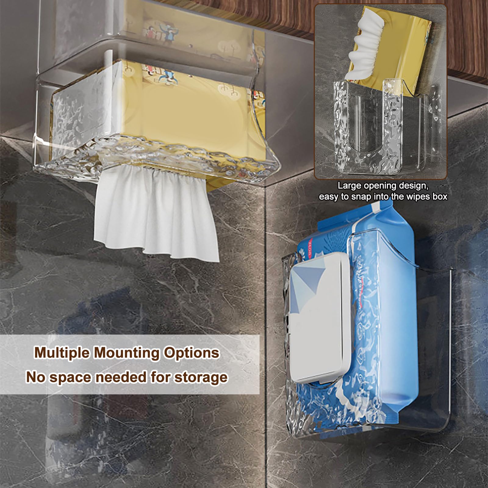 Lot de 2 boîtes à lingettes humides et 2 sacs pour lingettes Son design permet une utilisation universelle dans la salle de bain, le salon et divers autres environnements, offrant une solution de rangement pratique pour les lingettes humides Boîte Lingettes Transparente Rangement Cuisine Salle Bain Porte-lingettes Mural Sans Perçage - Boîte Rangement Papier Toilette - Transparent - Pour Cuisine/salle De Bain Porte Mouchoir Sans Perçage Distributeur De Lingettes Humides Spécification : Couleur : transparent Matériau : plastique Taille : 14,5x11,5x8,3 cm Détails du forfait : 2 x boîte de rangement pour lingettes de cuisine 2 x autocollant sans trace Remarque : En raison de la mesure manuelle, la taille et le poids peuvent présenter une certaine erreur. Design élégant: cette boîte de rangement de serviettes en papier adopte une conception de forme rectangulaire, avec une grande capacité, une apparence transparente, simple et élégante, qui peut être assortie à divers styles de design d'intérieur, ce qui rend votre cuisine et votre salle de bain soignées et belles. Contenu de la livraison : lot de 2 boîtes de rangement pour lingettes humides Support mural en blanc et gris, vous permet de garder vos serviettes de cuisine à portée de main, le design minimaliste transparent, combine fonctionnalité et élégance, ajoute une touche de sophistication à n'importe quelle pièce. Matériau de qualité supérieure : notre distributeur de lingettes humides de... Matériel produit: Nos porte-paroi lieux sont en plastique premium, qui est fort et durable, pas facile à casser, facile à nettoyer, vous pouvez l'utiliser pendant longtemps. Facile à utiliser: notre distributeur de lingettes transparent a un fort adhésif, qui peut être facilement fixé sur le mur, le bureau et d'autres endroits sans forage, ce qui le rend facile à utiliser. Il est très pratique et est un élément incontournable pour la maison. Application large: Ce distributeur de lingettes humides convient aux bureaux de bureau, aux salles de bains, aux cuisines, aux chambres, aux salons, aux tables de pansement, aux tables de chevet, etc.