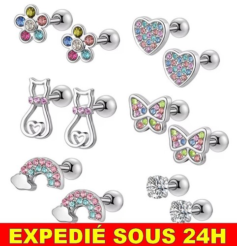 Sans Perçage Hypoallergénique Boucles D'Oreilles Clip HIFOT - 8 Paires - Licorne, Couronne - Pour Filles - Résine Hypoallergénique - Cadeau Enfant Boucle D'oreille Clip Ces boucles d'oreilles à clips pour enfants sont fabriquées en alliage de qualité supérieure sans métaux nocifs et sont légères, de sorte qu'elles ne fatiguent pas vos oreilles Bijoux Clip Sans Perçage Perce Oreille Lot De 8 Paires De Boucles D'oreilles à Clip JeweBella - Sans Perçage - Cœur Étoile Fleurs - Hypoallergénique Bijoux Sans Perçage Boucles Motifs Fleur Papillon étoile Les motifs scintillants ajoutent une touche d'élégance ludique à toutes vos tenues,que ce soit au quotidien,en soirée ou à l'école. 💫【Fermeture antidérapante】Le design à clip est spécialement conçu pour les filles sans oreilles percées et dispose d'un coussinet en silicone antidérapant pour éviter qu'elles ne tombent. Bouchons d'oreilles,Protège-oreilles doux pour enfants de 3 mois à 4... 🌼【Matériaux hypoallergéniques de haute qualité】Jolies boucles d'oreilles à clip en alliage métallique galvanisé avec zircones cubiques scintillantes. Cela réduit la pression sur les lobes d'oreilles et assure un ajustement confortable et sans effort. Elles constituent le cadeau idéal pour les filles,pour un anniversaire,Noël,le Nouvel An,la rentrée ou toute occasion spéciale. 🎀【Cadeau parfait pour les filles】Ces boucles d'oreilles à clip girly sont ornées de cristaux de zircones cubiques pour un look élégant.