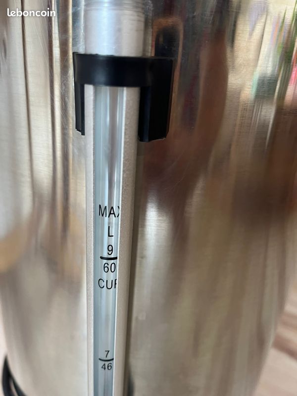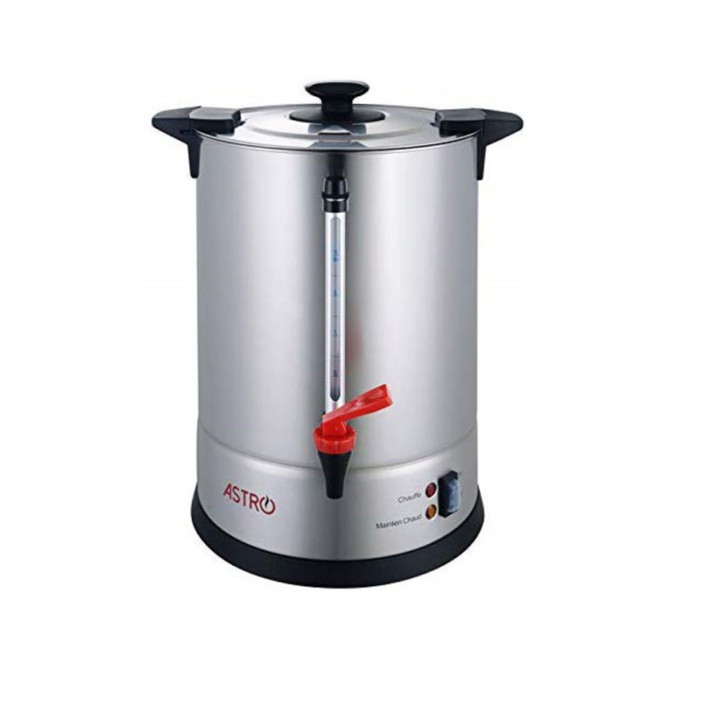 Cafetière Professionnelle 9 Litres Percolateur à Café électrique Avec Fonction De Maintien Au Chaud Cafetiere A Grain Avec Broyeur Royal Catering Machine à café expresso - 4062859005878 Machine à Café Filtre - ROYAL CATERING - RC-CU9 - Grande Capacité 9L... Cette cafetière grande capacité est dotée d'un boitier en inox et d'un robinet en cuivre. Grâce à ses poignées Cool Touch, il est possible de la déplacer même après qu'elle a fonctionné. Ce modèle de 1 200 W fait rapidement chauffer les boissons pour ensuite les maintenir à la température idéale. Sa contenance de 9 l permet de diminuer le temps passé à préparer du café tout en mettant à la disposition du personnel ou de la clientèle une quantité suffisante de boissons chaudes au fil de la journée. Détails techniquesPuissance [W] 1 200Cordon d'alimentation [m] 1,3Café produit 60 tassesMatériau du boitier Acier inoxydable et robinet en cuivreContenance totale [l] 9Capacité de la trémie à grains 500 gCapacité d'admission [l] 9Température max. Sécurité – poignées froides qui permettent de déplacer l'appareil sans se bruler Hygiène – avec robinet et plateau d'égouttage Percolateur 100 Tasses (Machine à Café) 15L 1600w