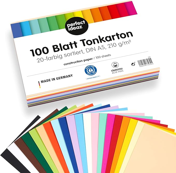 perfect ideaz 30 feuilles de carton photo A3, carton de bricolage... PLAISIR DU BRICOLAGE – matériel prisé par toute la famille, par les grands et les petits, pour le dessin, l'impression, le bricolage, p., ex. pour des collages, des cornets scolaires, des albums photos, des cartes de vœux, des figurines en papier et bien plus Papier Carton Couleur Bricolage Perfect Ideaz • 100 Feuilles De Carton Photo A6, 20 Couleurs Feuille A4 FORMAT ÉLÉGANT – dimension précise de 148 x 210 mm (DIN A5), très simple à découper Nous avons analysons tous les produits en loisirs Créatifs de la marque perfect ideaz et trouvons les 20 meilleurs choix pour vous. Lisez l'avis perfect ideaz avant d'acheter EXCELLENTES CARACTÉRISTIQUES – carton extra robuste 300 g/m², intensité des couleurs particulièrement élevée, pas de dégorgement puisque coloré en totalité, pas d'estompement en raison d'une excellente résistance à la lumière, MADE IN GERMANY, certifié Ange bleu Ideen mit Herz Lot de 100 feuilles de carton coloré - Format A4 - Qualité stable - 220 g/m² - 20 couleurs - 100 feuilles de papier de bricolage - Papier de