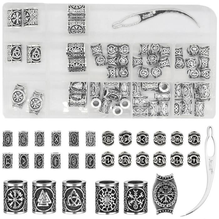 Perles de dreadlocks nordiques antiques Perles de Barbe pour Hommes 10... Perles pour barbe & cheveux Boule Noel Barbe Lot De 10 Perles De Barbe Viking, Perles De Dreadlocks Viking Perles Vikings Entrelacées 2 Perles De Barbe Viking En Métal, 14x13mm, Trou: 10mm - Argent Antique