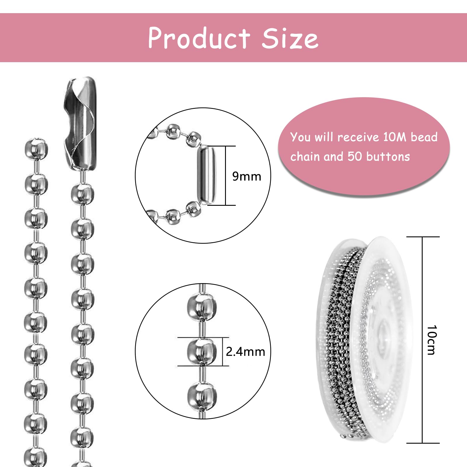 Gotetiso Chaine a Bille 5m Longueur 2,4 mm Diamètre Chaine Boule Chaîne Contenu du colis : Rouleau de chaîne de perles en métal argenté de 15 mètres, 30 connecteurs assortis. Chaîne Perles Acier Inoxydable PP OPOUNT 14,6 M Chaîne De Perles De Boule 2.4 Mm Chaîne De Boule Acier Connecteurs Chaîne Perles Décoration Décoration de lampe de table La chaîne à billes en acier inoxydable a une bonne texture et est adaptée à votre lampe de table de haute qualité Avec ses maillons de 2,4x1,4 mm et sa maille non soudée, elle offre une grande liberté de personnalisation, puisqu'il est possible d'ouvrir les maillons pour y insérer directement des breloques, pendentifs ou intercalaires PP OPOUNT Électrique de Perles/Spinner de Perles d'Argile Avec 3171 PCS... Caractéristiques : La chaîne de perles est enveloppée dans un rouleau, pratique à organiser; vous pouvez utiliser le connecteur correspondant pour connecter les deux extrémités de la chaîne de perles afin de former une poignée ou de rallonger la chaîne. Matériau : Nos colliers en chaîne de perles sont fabriqués en acier inoxydable qui ne rouille pas, solide et durable. Longueur réglable : La longueur est réglable, il suffit de couper entre les billes avec une pince pour une longueur plus courte selon vos besoins, ce qui est pratique au quotidien. Décoration de ventilateur de plafond Les lignes de coupe circulaires modernes sont adaptées à vos meubles modernes, pratiques et à la mode Les perles en forme de billes ont une taille uniforme avec une surface lisse. Décoration de bagages La surface en acier inoxydable reflète la couleur exquise, ce qui est le symbole unique de vos bijoux de valise