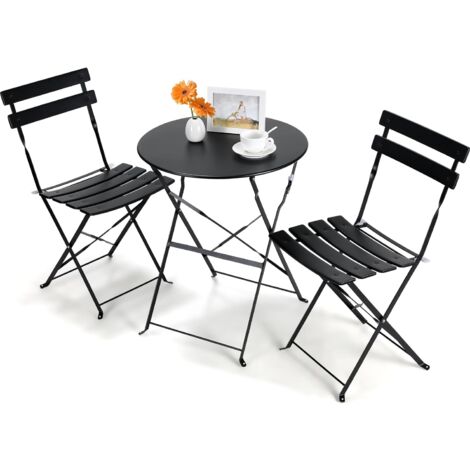 Ensemble table et 2 chaises pliantes – élégant et fonctionnel ! Chaise Pliante Exterieur Table Exterieur Avec Chaise Salon Jardin 2 Personnes GOKHOMX - Table Et 2 Chaises Noires Balcon Terrasse Salon Jardin Plastique Métal Noir Table Pliante Ronde Ensemble polyvalent table extérieur avec chaise 2 personnes : Parfait pour les balcons, jardins, terrasses, arrière-cours ou cafés, cet ensemble table bistrot extérieur avec chaises pliante crée facilement un coin extérieur accueillant où qu’il soit placé La structure renforcée en forme de X améliore encore la stabilité Il suffit de le plier lorsqu’il n’est pas utilisé pour optimiser l’espace et la praticité Aucun montage nécessaire et facile à nettoyer : Il suffit de déplier et de profiter. Bonbons parler Côte table ronde balcon formel mineur Café 1 Imperméable 2 Construction robuste 3 Verrou de sécurité 4 Manchon de protection 5 Pieds antidérapants Que vous preniez un café le matin ou un apéritif le soir, ce petit table de jardin et chaises pour 2 personnes apportera une touche de charme à vos moments en extérieur. Ensemble polyvalent table extérieur avec chaise 2 personnes Gain de place et facile à transporter : Cet ensemble table et chaises de jardin extérieur pour 2 personnes présente un design pliable, pratique à ranger et à déplacer — idéal pour les petits balcons ou le camping. Savourez des moments de détente en plein air avec cet ensemble de bistrot de jardin pliable, comprenant 2 chaises de jardin pliantes et 1 table de jardin pliante assortie Bistrot Woody table de jardin de balcon en acier et bois avec 2 chaises... GOPLUS Ensemble Bistrot Pliable avec 1 Table Ronde et 2 Chaises... Table pliante avec système de verrouillage La table est équipée d'un verrou de sécurité pour table afin d'éviter tout pliage accidentel Table et chaises pliantes -intérieur et extérieur Table et chaises de balcon en métal durable : La table balcon pour 2 personnes et les chaises balcon sont fabriquées en métal solide avec un revêtement résistant aux intempéries, à la rouille et à la décoloration, offrant une grande durabilité et un charme intemporel. Anti-rouille et couleur inaltérable Cadre métallique robuste avec revêtement résistant aux intempéries