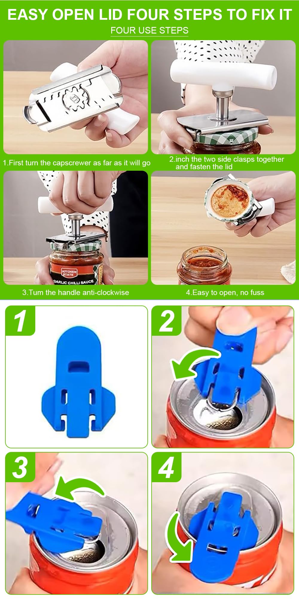 Ouvre Bocal Ouvre-boîte Pour Personnes âgées, Ouvre-boîtes Extensible Pour Bocaux Accessoire Cuisine Réglable 2.5 à 9.5 Cm Fiches sur platine pour menuiserie PVC - acier zingué blanc OTLAV Tumgatte ouvre-boîte pour les personnes âgées ouvre-boîte pour les mains faibles Ouvre-boîte facile avec ouvre-boîte Ajuster ouvre-boîte multiple 4 en 1 ouvre-boîte ouvre-boîte Caractéristiques: 4 en 1 JAR OPENER Multifonction, petit cercle est pour bouteille et bouteille de bière; Large Circle est un ouvre-boîte; Centre enlève les languettes d'étanchéité; JAR OPENBOîte Le... Contenu de la livraison : 1 ouvre-boîte économiseur de travail., Remarque : 1., Les mesures étant prises à la main, les tailles indiquées peuvent varier légèrement., 2., La couleur de l'article peut varier légèrement de celle de la photo en fonction des paramètres d'affichage et de luminosité de votre ordinateur. Matériaux de qualité supérieure : notre ouvre-verre est fabriqué en acier inoxydable de qualité supérieure et la poignée verte est en plastique ABS. Il a une excellente durabilité et résistance à la corrosion, il résiste à une utilisation quotidienne et est un compagnon fiable dans la cuisine. Caractéristiques : 1., Ouvre-bocal fabriqué en acier inoxydable haute résistance et une poignée robuste en plastique dur., 2., Cet ouvre-verre utilise la puissance d'un mécanisme d'engrenage intelligent et ouvre les boîtes en quelques secondes., 3., Ouvre-bocal pour arthrite - Démoulez facilement même les couvercles les plus durs en une seule rotation rapide., 4., Cet extracteur de couvercle peu encombrant est compact et s'adapte parfaitement dans les tiroirs de cuisine, les armoires ou les étagères à épices., 5., Un cadeau idéal pour maman, grand-mère ou toute personne qui pourrait avoir besoin d'une main d'aide dans la cuisine. Design personnalisable : notre ouvre-boîte économiseur de travail peut tout travailler, des petites bouteilles d'épices aux grandes boîtes. Cadeau chaleureux : pas de torsion, pas de traction, pas de douleur. Un cadeau bien pensé pour une mère ou quelqu'un avec peu de force. Ouvre-bocal 5 en 1 et 6 en 1, ouvre-boîte, soda et bocal, couvercle à...