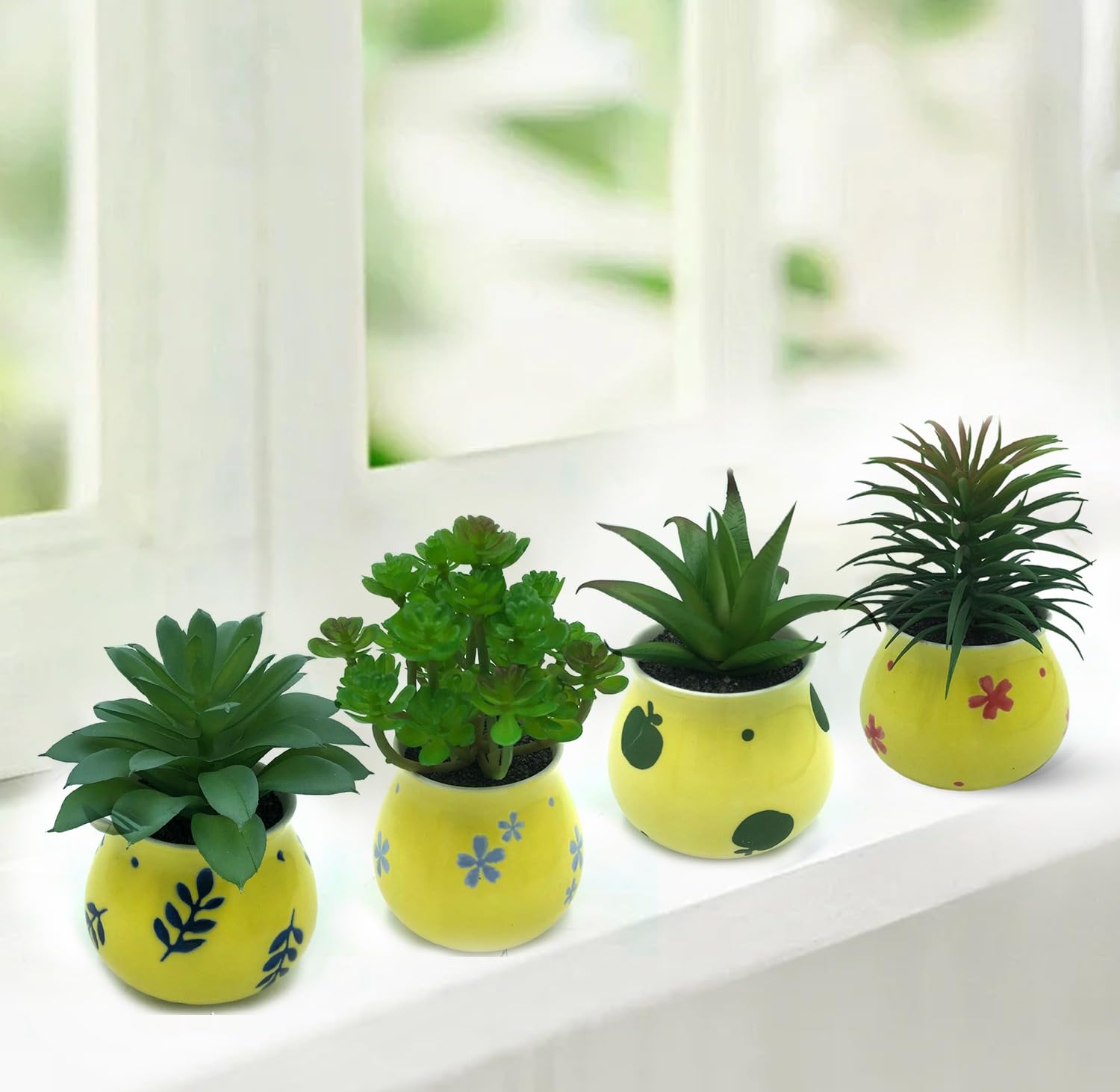 Plantes Succulentes Artificielles, Jolies Plantes Grasses Dans 2 Pots En Ceramique Rose Petites Plantes Artificielles Pour Bureau Chambre A Coucher Decoration De Bureau Esthetique Pour Femme 84654696 Taille idéale : vous recevrez 2 mini plantes artificielles différentes. Mini Plantes Vertes Réalistes Pour Maison Der Rose Lot De 2 Petites Fausses Plantes, Plantes Artificielles En Pot Dans Des Pots Noirs Pour La Maison, Le Bureau, La Salle De Bain Plantes Artificielles Pot Déco Dans l'ensemble, elles ont l'air très réalistes. BONNE QUALITÉ QUI SE DÉMARQUE : Conçus avec des matériaux de choix, ces arbres artificiels possèdent deux troncs d'un réalisme saisissant et sont agrémentés de 15 feuilles véritables, créant ainsi un décor tropical idéal pour votre domicile ou votre bureau Coferset Lot de 2 mini plantes artificielles en pot - Plantes d'eucalyptus pulvérisées en pots - Petites plantes d'intérieur pour la maison, le bureau, la chambre - Les plantes d'eucalyptus artificielles sont fabriquées en plastique respectueux de l'environnement, elles sont sûres et non toxiques, colorées et ont un aspect naturel Elles sont également une jolie décoration de bureau qui aide à soulager la fatigue oculaire et à soulager le stress. Ils sont la décoration idéale pour la maison, le salon, la cuisine, la chambre, la salle de bain, le bureau, le bureau ou l'étagère. Nous vous fournirons une solution dans les 24 heures. Les plantes artificielles sont robustes, ne se décolorent pas et les pots de fleurs sont très résistants à l'abrasion. Cadeau idéal pour la fête des mères, une pendaison de crémaillère, un anniversaire et plus encore. Matériaux durables : nos plantes et pots sont fabriqués en plastique de haute qualité.