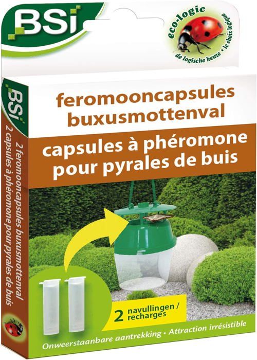 SWISSINNO SOLUTION Set de Recharge pour piège à Pyrale du Protégez vos buis avec le Piège à Pyrale du Buis de . Une solution efficace et respectueuse de l'environnement pour lutter contre la pyrale du buis, assurant la santé et la beauté de vos arbustes. Facile à utiliser, idéal pour des jardins impeccables Kit 3 Mois Surveillance Compo Recharge Phéromones Pour Piège à (3 Capsules Pyrale Du Buis 🎯 Piégeage ciblé pour réduire la population : Le leurre sexuel attire uniquement les mâles de la pyrale du buis, interrompant le cycle de reproduction. Il respecte les écosystèmes du jardin et protège les insectes utiles comme les abeilles, tout en étant sans risque pour les enfants et les animaux. Compo recharge phéromones pour piège à pyrale du buis (3 capsules... 🌱 Sans insecticide ni produits chimiques : Ce système de monitoring fonctionne sans substances toxiques. Installation rapide, sans outil ni erreur possible – remplacez simplement les anciens éléments. Le remplacement est propre, rapide et prêt à l’emploi, même en milieu humide ou en plein été. 🧃 Emballage hygiénique et facile à manipuler : Les composants sont protégés individuellement jusqu’à leur utilisation.