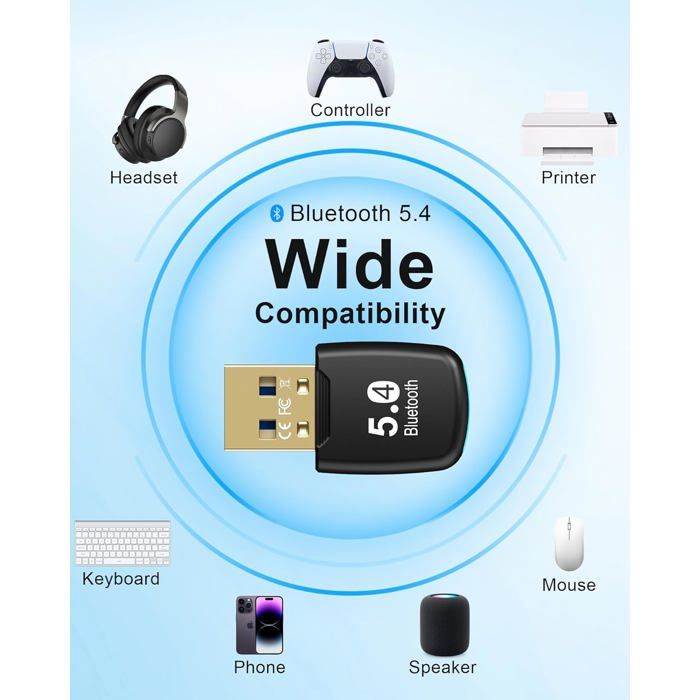 Si votre ordinateur est équipé du Bluetooth, veuillez d'abord le désactiver (Poste de travail -> Gérer les appareils -> Bluetooth -> Clic droit et cliquer sur Désactiver Bluetooth). La fonction de mémorisation automatique permet à l'appareil de se connecter automatiquement après la première connexion réussie. 【Portée de transmission longue de 1 m et plus】L'adaptateur Bluetooth offre une capacité anti-interférence et une stabilité améliorées pour améliorer la portée de transmission et atteindre la norme Bluetooth Classe 2, avec une portée de transmission très longue de 1 m et plus. Le CD fourni est téléchargeable. Bluetooth Keyboard And Mouse SHUBEIEUMI Bluetooth 6.0 Adapter Für PC, Plug & Play, Für Windows 11/10 Usb C To Usb A 【Connexion simultanée de 7 appareils】L'adaptateur Bluetooth 6., 0 prend en charge la connexion simultanée de 7 types d'appareils différents, tels que des enceintes, claviers, casques, souris et imprimantes Bluetooth. Windows 7 nécessite l'installation manuelle du pilote. Nouvelle Génération Bluetooth 6.0 ] Équipé de dernier chip Bluetooth 6.0, ce dongle Bluetooth pour PC prend en charge bimode de Bluetooth 6.0 Low Energy (BLE... La puce mise à jour offre une meilleure résolution audio, vous permettant de profiter d'un son haute fidélité et d'une qualité exceptionnelle pour vos musiques et films via Bluetooth. Rétrocompatible avec Bluetooth 5., 4/5., 3/5., 1., La transmission Bluetooth bimode réduit la perte d'efficacité de transmission due aux interférences dans la bande 2,4 GHz, améliorant ainsi la stabilité et la protection contre les interférences. Conseil : un seul appareil du même type peut être utilisé, et non simultanément. Carte Bluetooth Pc CLE WIFI / BLUETOOTH Phonillico Clé Bluetooth 5.0® Dongle USB Pour PC,Casque ,Souris,Clavier,Smartphone, Adaptateur Compatible Avec Windows 11/10/8.1/8/7 Clé USB Bluetooth 6.0 Faible Latence Adaptateur Bluetooth 6.0 amélioré]Adaptateur Bluetooth pour PC doté de la dernière technologie Bluetooth 6.0 EDR, offrant un débit de données plus... Cependant, il peut parfaitement répondre à vos besoins quotidiens).