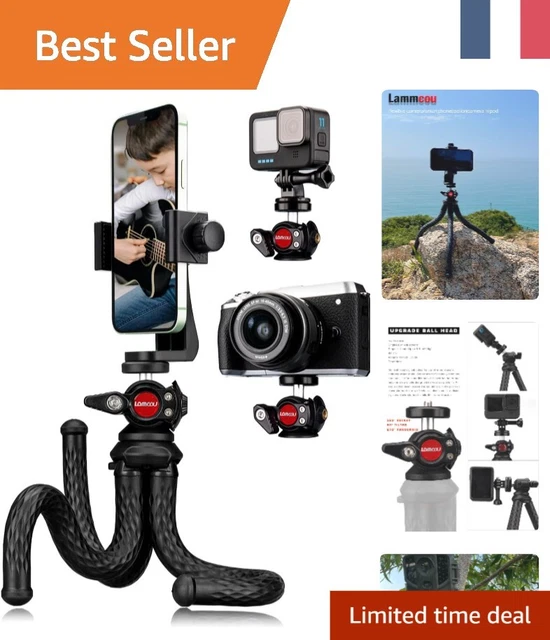 Fotopro Mini trépied FY810, trépied léger pour Appareil Photo Léger et portable : les pieds à 4 sections ajustent la hauteur du mini trépied de 21,5 cm à 140 cm ; se replie à 21,6 cm pour tenir dans un sac de transport ; et ne pèse que 0,72 kg, ce qui en fait un trépied de voyage compact idéal. Rotule Incluse Trépied Fotopro Trépied Pour Appareil Photo Et Téléphone Portable Avec Contrôle Perche à Selfies Perche à selfie et trépied pour smartphone | Perches à selfie Perche À Selfie Amovible Pour Selfie, Vidéoconférence, Zoom...