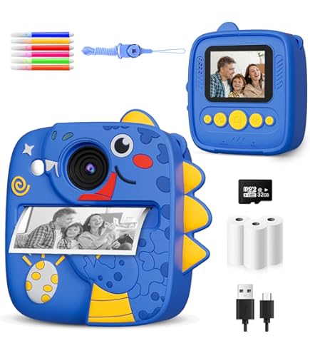 Faburo Appareil Photo Enfant ini Nuérique Caéra pour Enfant pour Jouet Cadeau Filles Garçons Dinosaure-Vert Appareil Photo Enfant Instantanée, 2,4 Pouces Appareil Photo Instantané Enfant... Appareil Photo Impression Sans Encre Appareil Photo Instantané Couleur Kriogor Appareil Photo Enfant, 2 Pouces Caméra Pour Enfants, HD 1080P Appareil Photo Numérique Pour Enfants Appareil Photo Enfant 3 Ans Appareil Photo écran 2.4 Pouces 1080p Appareil photo instantané spécialement conçu pour les enfants : la caméra pour enfants Syvory est facile et pratique à utiliser, peut prendre des photos couleur et des vidéos HD 1080p et imprimer des photos en noir et blanc. Appareil photo numérique sans encre pour enfants : cette caméra HD pour enfants utilise une technologie sans encre avancée, de sorte qu'aucun toner n'est nécessaire pour l'impression. COC-7542325391669-Appareil photo instantané pour enfants, caméra d' thermique, écran HD 2.4... C'est le choix idéal pour les cadeaux d'anniversaire, de Noël ou de tous les jours pour les enfants âgés de 3 à 14 ans. Il est sûr et sans irritation et est livré avec 3 rouleaux de papier d'impression qui permettent d'imprimer environ 150 photos pour répondre à tous les besoins photo de votre enfant. 【Contenu de la livraison】Comprend : 1 appareil photo instantané, 3 rouleaux de papier d'imprimante, 5 crayons de couleur, carte de 32 Go, adaptateur OTG, lanière, lecteur de cartes, câble de charge USB de type C, manuel d'utilisation (français non garanti). Équipé d'une carte mémoire de 32 Go qui peut stocker des milliers de photos et de vidéos, il est adapté aux enfants pour prendre des photos dans différentes situations telles que l'école, les voyages, les fêtes, les pique-niques, etc.