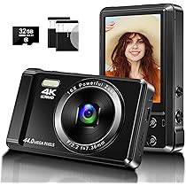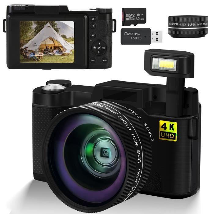 Appareil photo numérique 4K 64MP pour photographie autofocus Selfie Caméra de vlogging et webcam : l'objectif avant de l'appareil photo numérique 4K facilite les selfies de voyage en solo et le vlogging. L'écran couleur intégré vous permet de visualiser des séquences en temps réel, parfait pour les selfies et le vlogging Kodak Pixpro Fz55 Test Vlogging : Autofocus Et Zoom 16X Appareil Photo Numérique 4K 64MP 【Appareil photo numérique 64 MP 4K HD】Grâce à son capteur CMOS amélioré, cet appareil photo capture des images de 64 MP et des vidéos 4K haute définition, offrant une qualités d'image exceptionnellement détaillée et nette. Cette caméra est dotée d'un autofocus qui se verrouille avec précision sur les sujets, offrant des images vives et nettes pour capturer des moments clairs et époustouflants. Appareil Photo Numérique 4K 64MP Autofocus Vlogging Caméra Pour Youtube Avec Carte SD, Double Caméra Avant Et Arrière Avec Zoom Numérique 16X Anti-secousse, 2... Conçu spécialement pour les débutants, il offre un fonctionnement intuitif : il suffit de tourner la molette supérieure pour passer sans effort d'un mode à l'autre (photo, vidéo, ralenti, etc., ). Équipée de deux batteries rechargeables haute capacité et d'un fonction de chargement USB, elle répond aux besoins de prise de vue prolongée. Il offre également des fonctionnalités spéciales telles que réglage de l’horodatage, l'arrêt automatique et la détection des visages/sourires, répondant ainsi aux besoins des adolescents et des adultes qui souhaitent prendre des photos et documenter leur vie quotidienne à la maison ou en voyage. Connectez-la à votre ordinateur via USB et passez en mode « Webcam » pour la convertir en caméra d'ordinateur afin de diffuser en direct et de partager des vidéos sur les réseaux sociaux tels que Facebook, YouTube, etc.