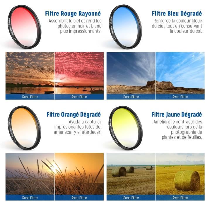 Accessoire Photo Tons Rouges Tbest - Filtre Objectif Rouge 52mm - Verre Optique Multicouche - Pour Nikon/objectifs 52mm Verre Optique Nano Traitement Lampe à infrarouge Portable pour le durcissement d... – Grandado Filtre Objectif Rouge Filtre D'appareil Photo SLR Accessoires D'objectif D'appareil Photo SLR 40,5 Mm 43 Filtre Objectif Numérique Universel Alu [REVÊTEMENT NANOMÈTRE MULTICOUCHE] - Protège l'objectif de la poussière, des rayures et offre des performances imperméables, résistantes à l'huile et antisalissure. Un outil puissant pour les photographes professionnels. Filtre d'objectif diffuseur de brume 77mm Hoya N01 pour Appareil photo... [COMPATIBILITÉ] – Convient pour , ,et autres appareils photonumériques. 50-53g / 1,8-1,9ozListe des paquets :1 x filtre d'objectif1 x boîte de rangement [COMPATIBILITÉ] - Convient aux appareils photo , ,et autres appareils photonumériques. [SCÈNES VIVES ET SUPERPOSÉES] - Améliore la teinte rouge des images, rendant les scènes comme les feuilles d'érable, les couchers de et les dunes du désert plus vives et superposées.