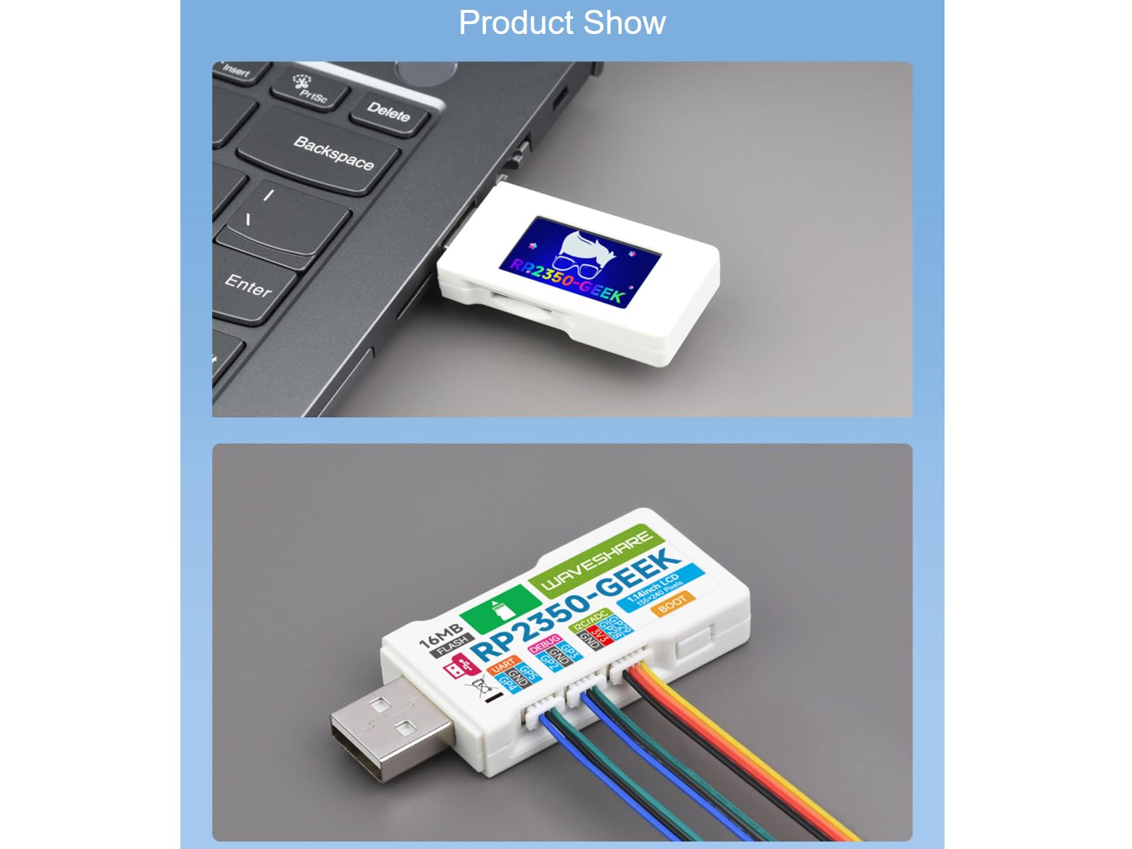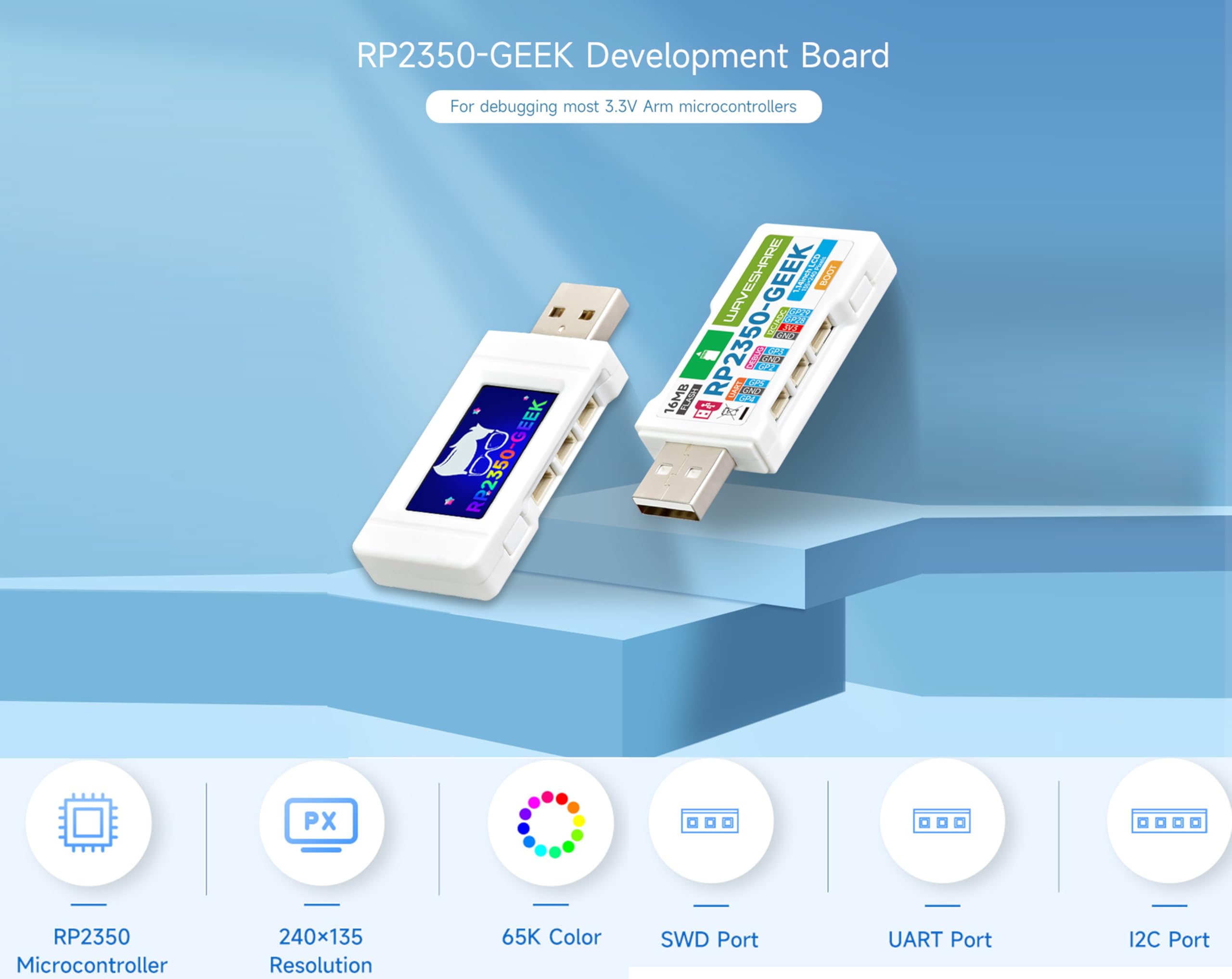 Rp2350 Geek Debugger RP2350 Geeks Entwicklungsboard Basierend Auf Raspberry Pi RP2350 Mikrocontroller, USB Debugging Downloader Mit 1.14 Zoll 65K Farb LCD Display, USB-A Port, SWD/UART / I2C Anschluss Etc Interface Swd Uart I2c RP2350-USB-A - A Raspberry Pi RP2350 board with an extra USB Type-A Connect to the debugging interface of Pico via the 3PIN SWD cable RP2350-GEEK Development Board, for debugging most 3., 3V Arm microcontrollers RP2350-USB-A - A Raspberry Pi RP2350 board with an extra USB Type-A... Combines multiple functions in one. Key features include: RP2350 microcontroller chip designed by Raspberry Pi in the United Kingdom Onboard 3PIN SWD port for connecting the debugged target board Standard CMSIS-DAP interface can be used to debug most ARM-based microcontrollers Works with OpenOCD and other tools supporting CMSIS-DAP Adopts the Raspberry Pi 3PIN Debug Connector SpecificationOnboard 3PIN USB to UART bridge Onboard 4PIN I2C port for the testing target board Onboard 1., 14inch 240×135 pixels 65K color IPS LCD display Equipped with plastic case and cables Open-source firmware, more convenient to upgrade Development Resources https://www., waveshare. com/wiki/RP2350-GEEK?Amazon Package Content RP2350-GEEK and cables x1 Waveshare RP2350-GEEK Development Board, Based On RP2350 Microcontroller, With 1., 14inch 65K Color LCD, USB Debugging Downloader, With White Plastic Case Board specifications RP2350-GEEK is a geeks development board designed by Waveshare, onboard USB Type-A interface, 1., 14inch LCD screen, TF card slot, and other peripherals.