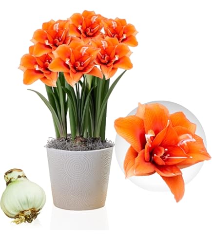N'est-ce pas une description appropriée ? Il existe plus de soixante-dix variétés différentes. Les points essentiels à retenir Les bulbes d'amaryllis sont principalement disponibles de novembre à avril. Amaryllis Red Lion - Amaryllis - Höstplantering Ils prendront ainsi un bon départ pour la croissance et la floraison. Avec des soins appropriés, vous pouvez le voir prendre vie avec de magnifiques fleurs en seulement quelques semaines, ravissant vos sens et embellissant votre espace. Leur apparence frappante peut transformer n'importe quelle pièce en une exposition éblouissante de la beauté de la nature. La couleur la plus connue est le rouge, mais il en existe aussi en blanc, orange, rose et crème. HAUTE QUALITÉ DE HOLLANDE: Nous livrons des fleurs et des plantes exclusives d'excellente qualité des Pays-Bas (Amsterdam) vers l'Allemagne. Certaines fleurs sont énormes, d'autres sont délicates et élégantes. Amaryllis - Hippeastrum 'Glitter Red' - Bulbe de fleur - Rouge | Leroy Comment entretenir les bulbes d'amaryllis ? Arrosez suffisamment pour garder la terre humide et évitez d'humidifier la partie du bulbe qui se trouve au-dessus de la terre. Une seule tige porte pas moins de 4 à 6 grandes fleurs. Les fleurs d'amaryllis peuvent varier non seulement en couleur, mais aussi en forme de pétales, ce qui confère à votre pièce une touche d'originalité. FLORAISON RAPIDE: Nos amaryllis proviennent des Pays-Bas et fleurissent en seulement 4 à 5 semaines ! Le nom officiel de l'amaryllis est Hippeastrum. Embellissez votre intérieur avec l'éclat des bulbes d'amaryllis et laissez-vous envoûter par la beauté intemporelle de ces fleurs enchanteresses. Apportez chaleur et beauté à votre intérieur avec des bulbes d'amaryllis Une beauté surprenante Un bulbe d'amaryllis est vraiment spectaculaire au premier coup d'œil et suscite de grandes attentes grâce à son aspect grandiose. Nous trouverons ensemble la bonne solution. Plongez dans le monde enchanteur de ces fleurs exquises et transformez votre espace en une vitrine éblouissante des merveilles de la nature. À quelle profondeur dois-je planter les bulbes d'amaryllis ? Plantez les bulbes d'amaryllis à une profondeur d'environ 1,5 à 2 fois leur taille. Avec ces bulbes, vous obtiendrez 3 à 5 fleurs par tige, plusieurs tiges, et une hauteur de 50-70 cm. Avec leurs fleurs lumineuses et voyantes, les amaryllis dégagent un parfum d'opulence et d'élégance. Hippeastrum Bulbe à Planter Amaryllis Bulbe Red Passion - 1 Pièce - Bulbes à Fleurs Grand Format 26/30 - Naturelle Plantes De Hollande - Hippeastrum (pas De Graines, Sans Cire Hippeastrum Fleur Intérieur Hiver Plus le bulbe est gros, plus vous pouvez vous attendre à avoir de fleurs. Cela permet à la plante de canaliser son énergie vers l'accumulation de ressources pour le prochain cycle de floraison. Il ne contient ni verre, ni vase, ni pot. Leurs couleurs vives et éclatantes attirent l'attention et constituent un point de mire dans votre intérieur. L'amaryllis, également appelée hippeastrum, séduit par la diversité de ses couleurs et de ses formes. Que vous préfériez un rouge classique ou un ton pastel plus discret, il existe une variété d'amaryllis qui convient à votre style. Nous vous présentons quelques favoris de l'année et de nombreux nouveaux choix passionnants pour les fêtes de fin d'année. Placez votre amaryllis à l'endroit le plus ensoleillé que vous puissiez trouver. CONTENU DE L'EMBALLAGE 1 grand bulbe d'amaryllis 26 30 v ritable pour rebord de fen tre et pot (sans graines, non cir et non artificiel). Avec ces bulbes, vous obtiendrez 3 5 fleurs par tige, plusieurs tiges, et une hauteur de 50-70 cm. Il ne contient ni verre, ni vase, ni pot Peut-on cultiver des amaryllis en pot ? Oui, les amaryllis peuvent être cultivées en pots si elles bénéficient d'un bon drainage et d'une terre nutritive. FACILE À CULTIVER: Que vous soyez novice ou jardinier expérimenté, notre amaryllis est facile à cultiver. Mais vous rencontrez des problèmes pour une raison ou une autre ? N'hésitez pas à nous en faire part !