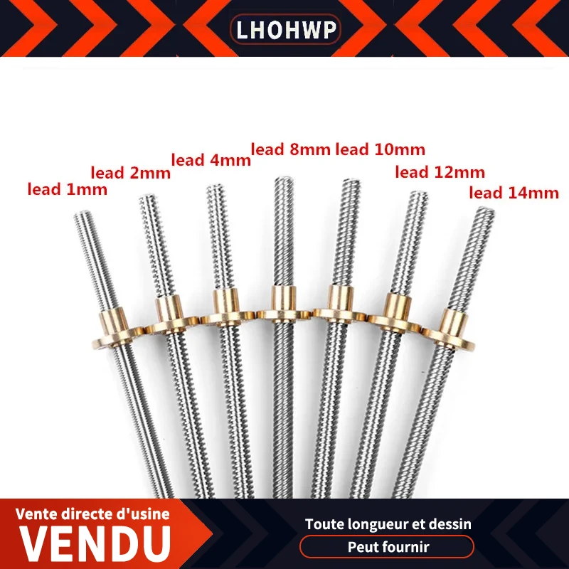 Achetez Assemblage de vis à broche ézoïdale, plomb fileté, écrou en laiton et cuivre, diamètre 8mm, 4mm, longueur T8 * 4, 200mm, 250mm, 300mm, 350mm, 400mm... Comprend : 1 vis mère T8 + 1 écrou Le plomb signifie : désigne la distance axiale des points correspondants des deux dents adjacentes sur la même hélice Vis Mère T8 Pas 1mm Pièce D'imprimante 3D CNC, Tige Trapézoïdale T8, Vis Mère De 8mm De Diamètre, Pas De 1mm-4mm, Plomb 1mm-14mm Avec écrou En Laiton, Longueur 100mm-1000mm écrou Laiton Anti-jeu Pour Vis Mère Matériel: acier inoxydable Changan-Vis mère T8 à tige filetée avec écrou à ressort anti-recul pour... Utilisé sur le rail de guidage d'entraînement du moteur pas à pas, la machine-outil et d'autres équipements, adapté aux imprimantes 3D, il est également largement utilisé dans divers domaines, tels que les guides d'entraînement du moteur, les machines-outils, les rideaux électriques et d'autres équipements. Vis mère trapézoïdale de 200 mm (8 mm de diamètre, pas de 8 mm) pour
