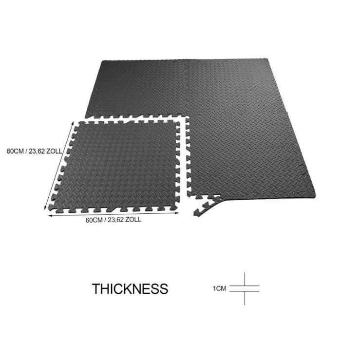 Panorama Tapis Sol - Modèle Carreaux Ciments Triana Brun 200x250 cm Cela rend également l'ensemble de tapis de sol idéal pour une utilisation autour des piscines. Tapis Puzzle Noir BLACK+DECKER Tapis De Sol Modulable - 6 Pièces - 40 X 40 Cm Par Pièce - Noir Mousse Amortissante Noir Nervurée Les tapis de sol sont imperméables, réduisant ainsi les risques de glissade. Panorama Tapis du Sol - Modèle Mosaïque Hydraulique Orientale Original... biiti Lot de 20 tapis de sol de garage en PVC - 40 x 40 c - Carreaux... Dimensions : environ 40 x 40 cm Les tapis de sol mesurent 40 centimètres de long, 40 centimètres de large et ont une épaisseur de 1 centimètre. TAPIS DE SPORT ET GYM IMPERMÉABLE - Utilisez les tapis de sol doux à côté de la piscine pour une protection supplémentaire et un risque réduit de glissade. Adaptés à une utilisation intérieure et extérieure, les tapis offrent une adhérence supplémentaire grâce à leur surface nervurée. Spécifications Tapis de sol BLACK+DECKER Nombre de tapis : 6 Cet ensemble de 6 tapis de sol de BLACK+DECKER est conçu pour être rapidement assemblé et démonté grâce à sa forme de puzzle.