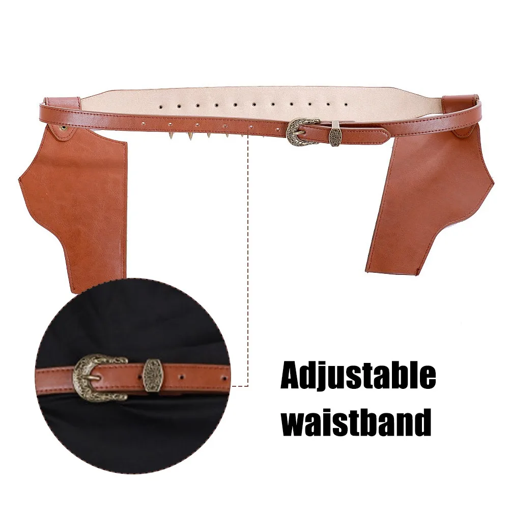 Costume Western Halloween Noël 9 Pièces Cowboy Costume Accessoires Chapeau De Cowboy Bandana Accessoires Cowboy Western Set accessoires de cowboy pour enfant Nous proposons aussi bien des déguisements cowboy pour adulte que des déguisements cowboy pour enfant. Avec des costumes à partir de 12.99€, impossible de ne... Matériau de haute qualité : la ceinture et l'étui de cow-boy sont en cuir synthétique, qui ne se casse pas facilement et est robuste et durable. Le badge est fabriqué en plastique de haute qualité avec une surface lisse, difficile à décolorer et durable. Convient aux jeux de rôle : cet accessoire de costume de cow-boy convient aux jeux de rôle pour enfants, qui peuvent simuler des histoires d'aventure occidentales ou jouer des personnages héroïques, des shérifs justes, des tueurs de sang-froid, etc. Il peut répondre aux besoins vestimentaires des enfants et permettre à vos enfants de devenir de vrais cow-boys ! Utilisez-le également comme décoration qui va bien avec vos différentes tenues. Cadeau pour les enfants : cet ensemble de cow-boy occidental convient aussi bien aux garçons qu'aux filles pour offrir aux petits guerriers l'expérience d'aventure la plus réaliste ! Parfait pour les enfants comme cadeaux d'anniversaire, cadeaux de Noël, cadeaux de Nouvel An, cadeaux de Pâques, etc. Ce costume cowboy Saier, c'est le look Far West garanti ! Le kit 5 pièces comprend : chapeau kaki réglable, gilet court en daim, ceinture en cuir, collier tête de taureau et bandana rouge imprimé