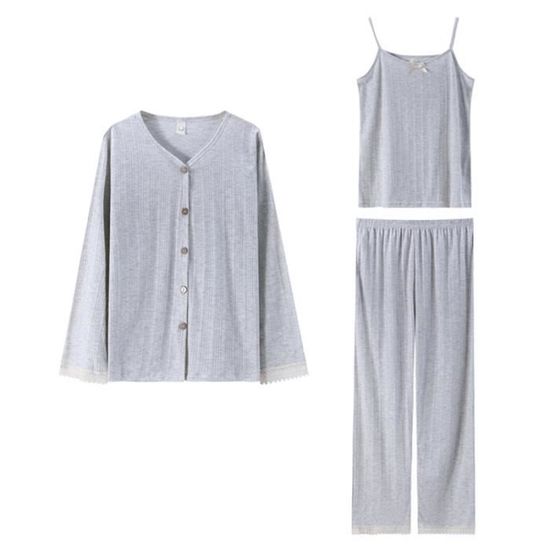 Pyjama Femme Velours 3 Pièces Pyjama Deux Pièces Femme : Chemise Et Pantalon Gris Pyjama Chic Confortable Tailleur-pantalon rayé gris : ensemble gilet sans manches et pantalon palazzo - France Découvrez la collection de pyjamas pour femme . Choisissez une tenue de nuit pour chaque saison parmi des hauts et bas de pyjamas courts ou... Conçu pour allier confort, chaleur et style, cet ensemble d’hiver est idéal pour se détendre à la maison ou pour passer une soirée cocooning. Le haut à fines détails en dentelle apporte une touche féminine, tandis que le gilet assorti avec ceinture satinée sublime la silhouette. Le pantalon fluide à taille élastique assure une liberté de mouvement totale pour un bien-être optimal. Offrez-vous des nuits douces et élégantes avec ce pyjama femme 3 pièces en velours gris à rayures. 🌙 Tissu doux et chaud en velours de qualité, idéal pour l’hiver. 🎀 Ceinture ajustable pour un maintien confortable et une coupe féminine. 🎁 Idée cadeau raffinée pour femme : pratique, chic et agréable à porter. Ensemble pyjama 3 pièces Livraison et Retour gratuit en boutique - Découvrez nos collections de soutien-gorge, culottes et bas, vêtements, prêt-à-porter, maillots de bain, et accessoires au meilleur prix et profitez de toutes nos offres