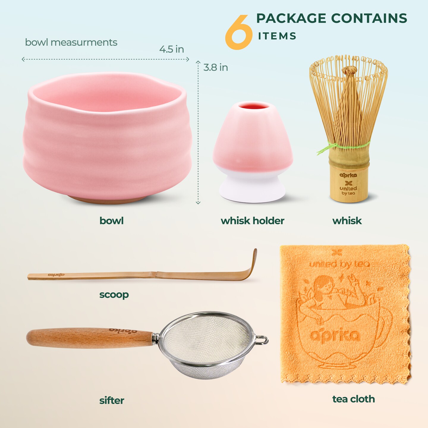Matcha Kit(6 Pièces): Notre coffret matcha inclut tout le nécessaire pour une préparation traditionnelle: 1 fouet matcha (Chasen), 1 cuillère matcha (Chashaku), 1 bol à matcha, 1 tamis, 1 support pour fouet et 1 cuillère. Le set inclut 6 pièces : un fouet en bambou (Chasen) pour une mousse onctueuse, un bol céramique avec bec verseur pratique, un support pour protéger le fouet, une cuillère doseuse précise, un tamis pour une texture fine et une cuillère en bambou Le fouet crée une mousse onctueuse, sublimant la saveur du thé matcha. Étapes d’Utilisation des Kits Matcha 1., Réchauffez le bol à thé avec de l’eau tiède afin d’optimiser la saveur du matcha., 2., Mesurez 3 à 5 grammes de poudre de matcha à l’aide d’une cuillère à café., 3., Passez la poudre de matcha au tamis pour obtenir une texture plus fine., 4., Ajoutez progressivement de l’eau tiède (80-85°C) pour préserver la délicatesse du matcha et éviter qu’une température trop élevée n’altère son goût., 5., Tracez un « W » avec le fouet à thé et mélangez vigoureusement jusqu’à dissolution complète de la poudre et formation d’une mousse en surface., 6., Une fois bien mélangé, dégustez votre matcha et savourez son arôme unique. Kit Matcha Débutant Bol Céramique Matcha Kit Matcha 6 Pièces - Fouet, Bol, Cuillère, Tamis - Céramique - Cadeau Thé Vert Accessoire Matcha Set Matcha Cadeau élégant Matériaux Sains et Durables: Le bol matcha en céramique est sans plomb ni cadmium, parfait pour un mode de vie sain. Description: Fouet à Matcha (Chasen): Le fouet produit une mousse onctueuse et homogène, révélant toute la finesse et les arômes subtils du matcha. Idéal pour débutants et experts du kit matcha. Aucun nettoyage compliqué nécessaire! La cuillère doseuse permet un dosage précis de la poudre, garantissant une préparation parfaite à chaque fois. Cuillère-Matcha: Garantit un dosage précis de la poudre de matcha, assurant une texture parfaite à chaque préparation. Contenu de l’emballage: 1x Fouet Matcha (Chasen) 1x Cuillère Matcha (Chashaku) 1x Bol à Matcha 1x Tamis 1x Support pour Fouet 1x Cuillère Offrez-vous l’authenticité d’un rituel ancestral avec ce coffret matcha japonais 6 pièces. Parfait pour les passionnés de thé vert matcha ou pour les novices désireux d’adopter une routine bien-être, ce set vous permet de reproduire chez vous la traditionnelle cérémonie japonaise du thé Bol à Matcha (Chawan): Son bec verseur pratique permet de servir le thé sans éclaboussures, pour une expérience sans précipitation. Offrez-vous une expérience de cérémonie du thé dans votre salon. Kit Matcha Cérémonie Kit Cérémonie Matcha Japonais - Fouet Bambou