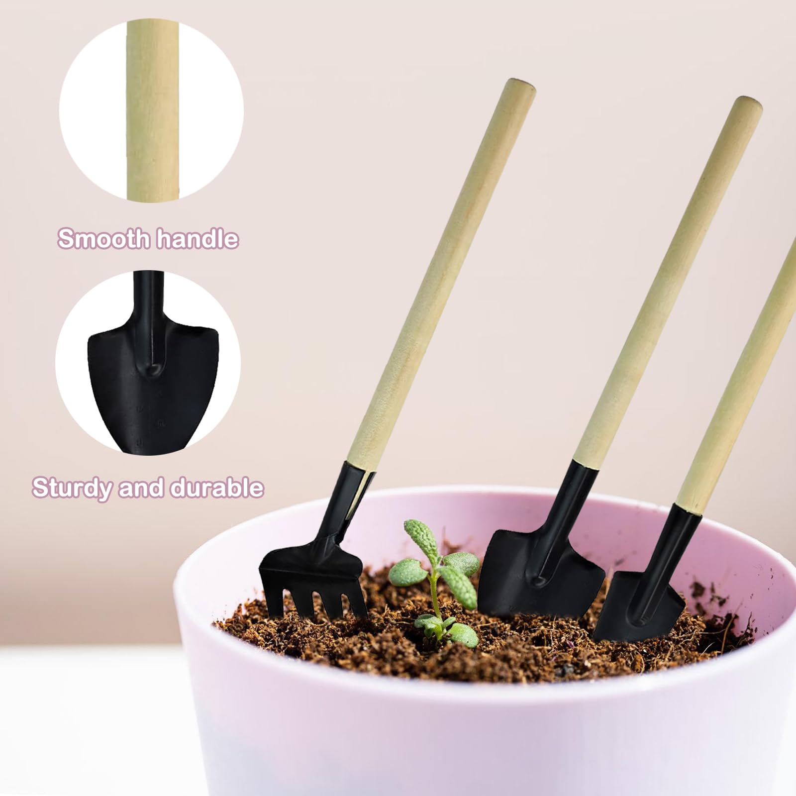 Outil Jardin Outils De Jardinage 6 Pièces, Mini Outils De Jardinage Pour Planter Des Accessoires Jardinage Débutant Enfant Brown Pelle en plastique pour ameublir le sol outils de jardinage 3 PCS Outils de Jardinage,Outils de Jardin,Mini Outils de Jardinage... Ils sont parfaits pour ameublir le sol, dégager les débris, désherber ou mélanger la terre avec de l'engrais. La poignée ergonomique offre une excellente prise en main et un confort optimal, réduisant ainsi la fatigue des mains. La surface est plastifiée et ne rouille pas facilement. Ces accessoires de jardinage sont légers, compacts, abordables, faciles à transporter et à utiliser. Le bois est respectueux de l'environnement et le manche en bois est lisse, sûr et robuste. Vie naturelle : Les outils de jardinage sont indispensables pour les activités de plein air. Ils vous permettent, à vous et à vos enfants, de vous rapprocher de la nature et de découvrir le plaisir de planter de vos propres mains. Guide : Comment choisir ses bons outils pour ameublir le sol...