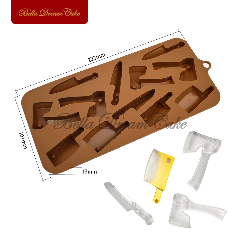 Le set de 3 (épée, couteau, hache) en silicone alimentaire permet de créer des détails précis en chocolat, pâte à sucre ou même résine. Résistant à la chaleur... Matière de silicone de haute qualité: Fabriqué à partir de silicone premium, ces moules sont flexibles et antiadhésifs, assurant une libération en douceur de vos créations de chocolat., ., Le matériau est également résistant à la chaleur, ce qui les rend sûres pour une utilisation avec des mélanges de chocolat chaud., ., Moules au chocolat Parfait pour les fêtes d'Halloween: ces moules en forme de couteau et de hache sont parfaits pour les fêtes, les cupcakes et les desserts sur le thème d'Halloween., ., Ils créent une atmosphère délicieuse et étrange, ce qui rend votre célébration d'Halloween inoubliable., ., Moules de chocolat d'Halloween Moules Résistants à La Chaleur Pour Projets DIY BOOSHMall 3 Pièces Moules à Citrouilles D'Halloween, Moule De Cuisson Silicone Antiadhésif Résistant Chaleur Facile à utiliser et à nettoyer: la surface lisse en silicone rend la garniture et le nettoyage sans effort., ., Il suffit de laver les mains avec du savon et de l'eau après utilisation, et les moules sont prêts pour votre prochain projet créatif., ., Moules de chocolat d'Halloween Faits saillants · Marque. CUCUFA · Couleur. Brun foncé · Matériau. Silicone · Dimensions de l'article L x l x H 23 x 12 x 5 centimètres · Poids de l'article. 200... Décorations créatives d'Halloween: Ces moules au chocolat d'Halloween 3PCS sont parfaits pour fabriquer des chocolats uniques en forme de couteau et en forme de hache, ajoutant une touche effrayante mais amusante à votre décor de fête d'Halloween., ., Les moules en silicone permettent une élimination facile et une créativité dans la conception., ., Moules de silicone pour chocolat Moule à fondant en silicone en forme de hache d'épée - Moule à