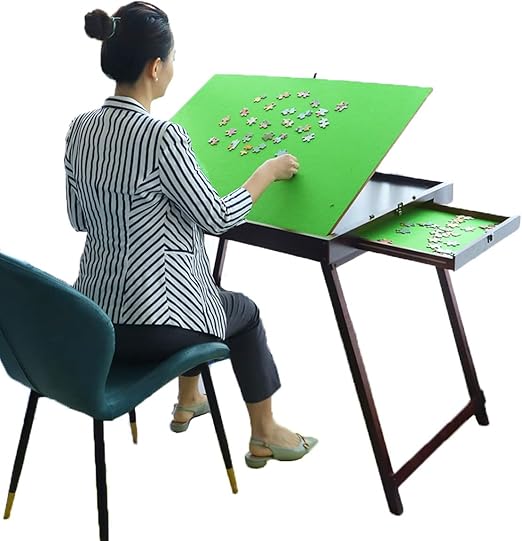 【Organisé avec 6 tiroirs colorés】Restez organisé pendant que vous jouez avec notre Table Portable pour Jeux, qui dispose de 6 tiroirs colorés conçus pour trier et ranger les pièces de puzzle. Plateau Puzzle 3000 Pieces Support Puzzle 1500 Pièces Planche à Puzzle Inclinable 1500 Pièces - Avec Support Et Housse 2-en-1, 6 Tiroirs Rangement Puzzle Planche Puzzle 2000 Pieces Description du produitFabriqué à partir de feutre de qualité supérieure au lieu des matériaux traditionnels en bois, il offre une portabilité et une durabilité accrues. Comparatif des meilleures tables de puzzle inclinables : 1500 à 2000 pièces, réglables en hauteur, rotation ou éclairage LED. Avis 2026 Pesant de 35 % à 50 % de moins que les plateaux de puzzles en bois traditionnels, cette table polyvalente vous permet de déplacer facilement vos puzzles inachevés n'importe où, garantissant un plaisir ininterrompu de vos jeux préférés. Lorsqu'il n'est pas utilisé, il suffit de ranger le support à l'intérieur du plateau comme un tiroir, offrant une expérience sans encombrement tout en améliorant votre confort en prévenant les tensions au cou et au dos pendant de longues sessions de jeu. Lavievert Planche de puzzle pliable avec support et housse 2 en 1, table inclinable avec 6 tiroirs, plateau en feutre portable. Vendu par : amazon... 【Conception Légère et Portable】La table à puzzles inclinable avec support et couvercle 2-en-1 est fabriquée en tissu feutre de haute qualité, ce qui la rend extrêmement légère et portable. Conception 2 en 1 avec support et couvercle : non seulement elle soulage les tensions au niveau du cou et du dos, mais elle permet également de conserver les progrès inachevés pour les reprendre plus tard. 【Housse en feutre de protection】Vos puzzles inachevés méritent d'être protégés ! Lavievert Planche de puzzle inclinable et rotative pour adultes avec 6 Spécifications du produitNom : Station de travail pour puzzleMatériau : feutreDimensions : 1 000 pièces [77 × 53,6 × 4,2 cm], 1 500 pièces [90 × 63 × 4,2 cm]Contenu de l'emballage : plateau de puzzle × 1Remarques :Les mesures manuelles peuvent entraîner de légères variations dimensionnelles. Cet ajout attentionné vous permet de faire une pause sans craindre que des pièces ne se perdent ou ne soient endommagées.