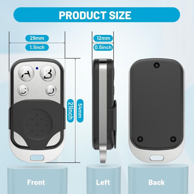), PT2264, PT222240 (LX2240 LX2241 SCL2240), S5211,1527 - EV1527, HS1527, HX1527, SC1527, GP1527, CP1527, SC1527, SC1527, SC1527, ZX1527, SMC918, AX5026, SMC926, AX5326-3, AX5326-4, FP527, HT600, HT680, HT6207, HT6010, HT6012, HT6014, HT12D, HT46F49E, PIC16F630, codes avec le même suffixe que SC2262 et PT2262., Application : le porte-clés porte-clés est destiné aux automobiles, aux portes de garage, aux portes, aux lucarnes, aux alarmes de voiture/moto, Produits de sécurité domestique, produits de télécommande sans fil à courte portée, appareils électriques/lampes domotiques, Produits de contrôle industriel, etc., applicables. Star-ARAMOX télécommande pour lg AKB73575421 Télécommande de Application: Convient pour les voitures, les portes de garage, les portes, les toits ouvrants, les alarmes de voiture/moto, les produits de sécurité domestique, les produits de télécommande sans fil à courte distance, les appareils électriques/lumières domotiques, les produits de contrôle industriel, etc. Télécommande Garage Voiture Aramox 4 Pièces Porte-clés De Télécommande Sans Fil De Télécommande Remplacement 4 Pièces ) ; 2262 (par exemple PT2262, SC2262, HS2262, HX2262, HX2262, HX2262 etc. Facile à utiliser : le système de télécommande à 4 canaux facile à utiliser avec antivol/antivol en un vous aide à contrôler vos appareils, voitures, maisons., et garages. Couleur E Télécommande sans fil universelle 433MHz, 4 clés, copie... Facile à utiliser: le système de télécommande à 4 canaux facile à utiliser avec fonction antivol/antivol à bouton vous aide à contrôler les gadgets, les voitures, les maisons et les garages. Les autres boutons fonctionnent également de cette façon., 3., Récupération de données : appuyez simultanément sur les deux boutons ci-dessous, le voyant LED revient à l'état normal et la récupération est réussie. Optez pour une télécommande universelle de clonage et simplifiez votre quotidien ! Compatible avec de nombreux modèles de téléviseurs, lecteurs vidéo et... 113g CODE IC pris en charge : 2260 (par exemple, PT2260, SC2260, HS2260 LX2260, HX2260, etc. Spécification : Condition : tout neuf Matériau : plastique Couleur : noir argent Pile bouton : 3 V CR2016 Courant nominal : 0,3 A Fréquence de fonctionnement : 433 MHz Portée de la télécommande : jusqu'à 50 mètres Poids du colis : env. Veuillez prendre le vrai en standard., 2., Nous vous suggérons fortement de vérifier le CODE IC de votre clé télécommande d'origine. CODE IC pris en charge : 222660 (par exemple PT222660, SC2260, HS222660 LX2260, HS2260 LX2260, HX2260, HX2260, etc. 4 télécommandes différentes clonent jusqu'à 4 signaux à distance!