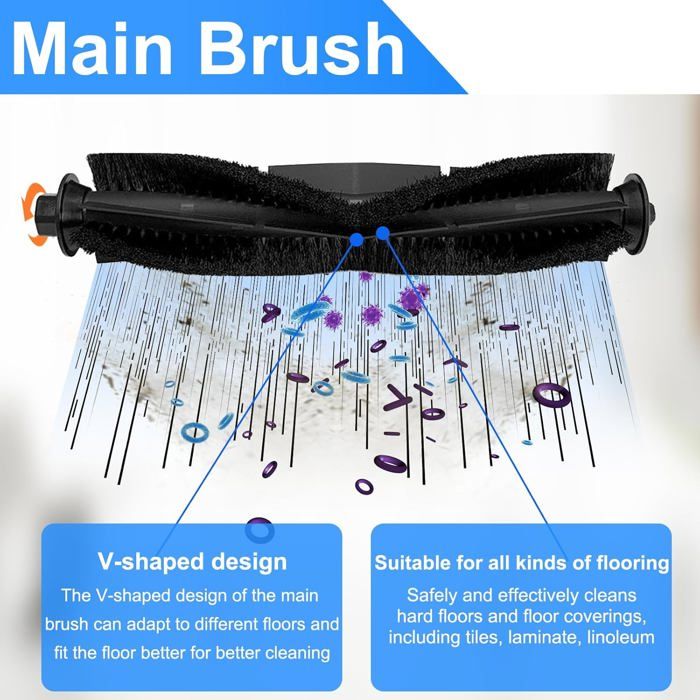 Pièces robot aspirateur, Kit d'accessoires pour robot 【Matériaux】Fabriqué avec des matériaux, utilisation durable. Kit Pièces Rechange Aspirateur Robot Kit De Rechange 14 Pièces Pour Aspirateur Honiture Q6 Pro/Laresar L6 Pro,Brosse Principale Accessoires Entretien Robot Honiture Contenu du paquet : 1 brosse principale., 6 filtres., 6 brosses latérales. Bonne qualité : le chiffon de nettoyage est fabriqué en microfibre douce 100 % de haute qualité pour protéger le sol des rayures. Le filtre HEPA peut maintenir les performances de nettoyage très efficaces de l'aspirateur et filtrer la majorité de la poussière dans l'air Pièces de rechange pour aspirateur HONITURE Q6 - Kit d'accessoires - 2 brosse principale - 6... Compatibilité : spécialement conçu pour les aspirateurs robots Q6 Pro et Pro. 【Rouleau anti-enroulement amélioré】Le rouleau nouvellement conçu s'ajuste et tourne pour balayer efficacement la poussière dans la boîte à poussière, les cheveux emmêlés. Contenu de l'emballage : 1 brosse principale, 6 filtres, 6 brosses latérales. * Dans le cadre d'un entretien normal, il peut être facilement retiré et remplacé. Remplacement facile : dans le cadre d'un entretien de routine, les pièces peuvent être facilement retirées et remplacées. Caractéristiques : * *Fabriqué avec des matériaux de haute qualité, plus * Rouleau anti-enroulement nouvellement conçu, la brosse s'ajuste et pivote, balaie la poussière dans la boîte à poussière pour éviter les nœuds.