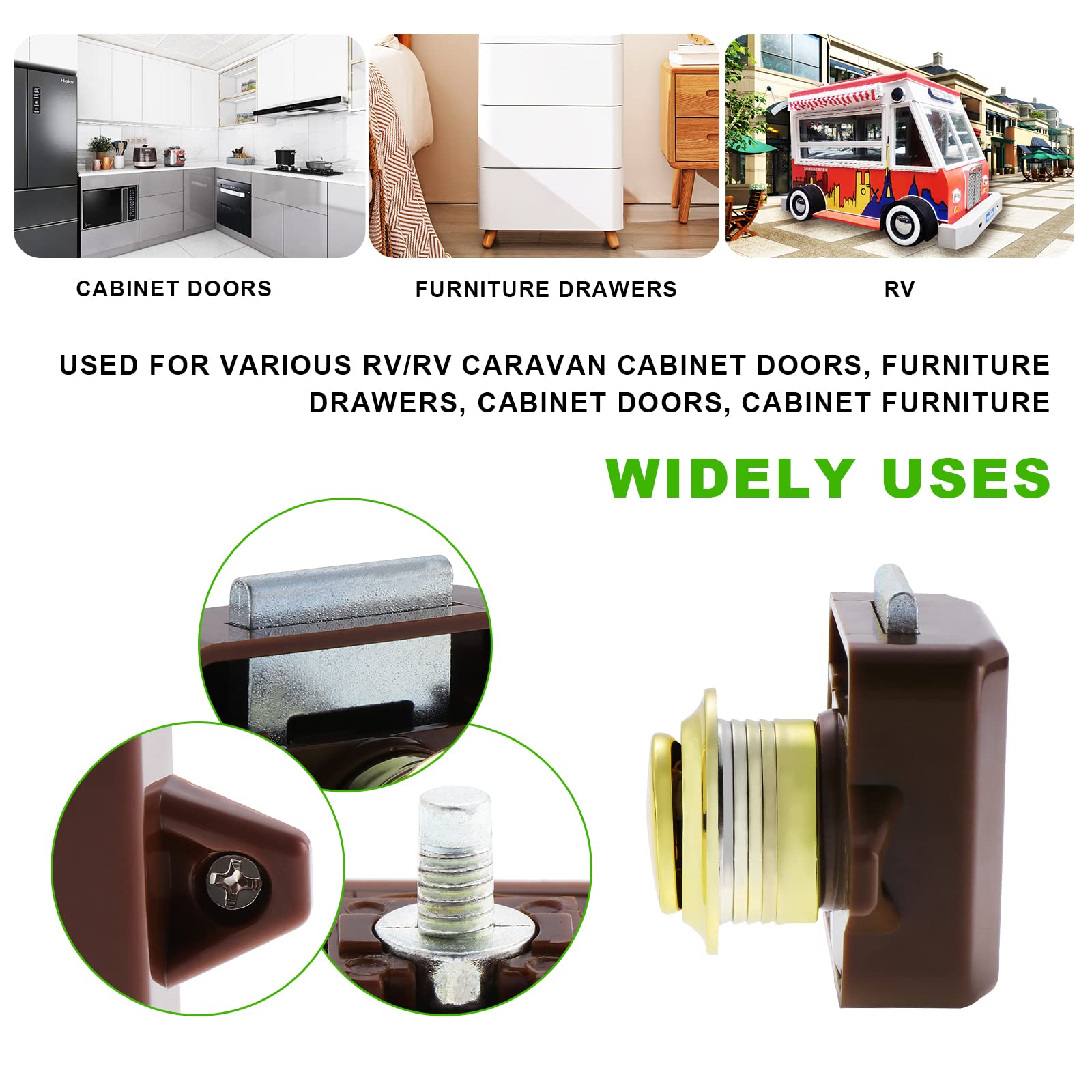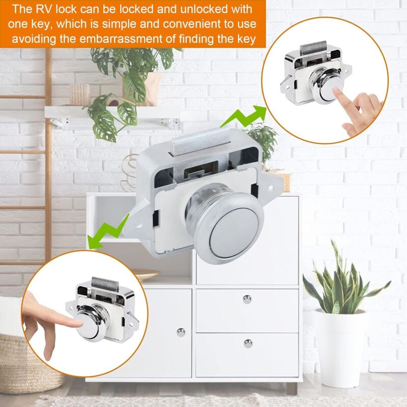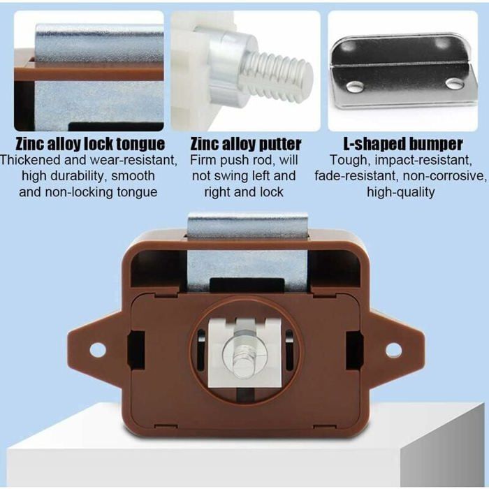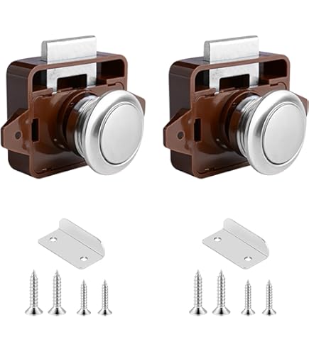 Serrure À Bouton De Tiroir Porte D'Armoire Sans Clé Verrouillage À... Matériau de qualité : ce push lock est fabriqué en alliage de zinc de qualité supérieure et ABS de haute qualité, solide et durable, inoxydable, léger, push lock est lisse et sans grains, agréable à saisir, facile à nettoyer Large gamme d'applications : le push lock convient pour une utilisation sur les portes de meubles, tiroirs, armoires, camions, caravanes, camping-cars, yachts et tout autre endroit où une serrure doit être installée Verrouillage Meuble Tiroir Bouton Poussoir Loquet 2 Pièces Serrure De Porte Meuble Fermoir Bouton Poussoir Camping Car Pour L'armoire De Porte De Placard De Camping Cars De Yacht De Bateau De Tiroirs Serrure Sans Clé Pour Porte 14-16 Mm Matériau : alliage de zinc, ABS Ouverture de porte appropriée : diamètre du trou 26 mm, épaisseur 14-16 mm Contenu de l'emballage : 2 boutons poussoirs en alliage de zinc avec 8 longues fixations à vis, 2 butées en forme de L. Serrures-poussoirs pour porte coulissante - Lee Valley Tools HAFRILY Push Lock Lot de 2 serrures à bouton poussoir en alliage de zinc pour serrure de meubles, caravane, tiroir, serrures de porte d'armoire, yacht Caractéristiques du produit Push Lock : 01., Matériau de qualité : ce push lock est fabriqué en alliage de zinc de qualité supérieure et ABS de haute qualité, solide et durable, inoxydable, léger, push lock est lisse et sans grains, agréable à saisir, facile à nettoyer., 02., Design du bouton poussoir : ce push lock dispose d'un design à bouton-poussoir, le verrouillage à bouton-poussoir est réactif, flexible et ne nécessite pas de clé pour ouvrir ou fermer, il suffit d'appuyer sur le bouton poussoir et de tirer le boulon pour ouvrir le push lock, le design à bouton-poussoir est très pratique 03., Installation facile : nous avons une gamme complète d'accessoires de montage pour faciliter l'installation de la serrure à bouton poussoir sur des portes d'une épaisseur de 14 à 16 mm et d'un diamètre de trou de 26 mm., 04., Large gamme d'applications : le push lock convient pour une utilisation sur les portes de meubles, tiroirs, armoires, camions, caravanes, camping-cars, yachts et tout autre endroit où une serrure doit être installée Caractéristiques du produit : Couleur : argenté, marron. VERROU À PISTON poussoir facile à installer pour armoires alliage de