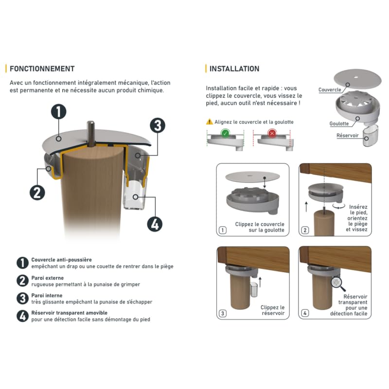 ⚡EFFICACITÉ DURABLE : 24h/24 et 7j/7 Les punaises de lit peuvent facilement grimper sur la surface extérieure texturée mais sont incapables de s'échapper du réservoir intérieur glissant. Intercepteur Punaises Pied Lit Cylindrique 70mm Pièges Anti Punaises De Lit 12 Intercepteurs Noir Et Terre De Diatomée Piège Intercepteur Punaise De Lit Terre De Diatomée 4 pièges avec terre de diatomée. Terre de diatomée anti-punaises de lit BIOCINOV De plus, ce piège est fabriqué en France, garantissant des standards de qualité élevés. 🔄 POLYVALENT : adaptable sur pieds de sommier cylindriques standards : diamètre maximum de 70 mm, hauteur minimum de 100 mm, diamètre maximum de la vis de 10 mm (M10). LE SOMMEIL FACILE! – Détection et protection contre les punaises de lit 24 heures sur 24 et 7 jours sur 7. Surveillez les pièges facilement 24h/24 et 7j/7... La terre de diatomée doit être versé au fond des réservoirs. Fabriqué en plastique renforcé, il est suffisamment robuste pour supporter des meubles lourds. 🔬 TESTÉ PAR UN LABORATOIRE EUROPÉEN spécialisé en insectes : notre piège a prouvé son efficacité et est considéré comme l'un des pièges les plus validés scientifiquement. Lot 4 Pièges anti punaises de lit - Leroy Merlin Le montage est facile et ne nécessite aucun outil. 👁️🗨️ POUR PROFESSIONNEL : Une conception convenant aux professionnels de l'hôtellerie souhaitant une surveillance discrète et efficace (parfait pour maisons, appartements, hotels, auberges, dortoirs, hôpitaux, maisons de retraites et autres résidences)