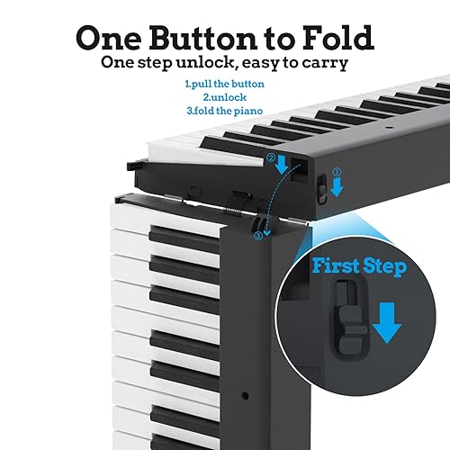 Bewinner Piano Enroulable à 88 Touches, Clavier de Piano Pliable, Clavier de Piano Portable Rechargeable, Piano à Clavier Déroulant avec Affichage Facile à utiliser : piano portable avec affichage à tube numérique LED; jeu indépendant avec votre propre haut-parleur; prend en charge le son externe ou les écouteurs; La pédale de soutien externe est disponible Piano Numérique Portable 88 Touches Pliable Roulable Débutant Piano Portable Utilisation universelle : piano enroulable portable pour tous les âges ; avec 88 touches (A1‑C9) piano standard ; avec fonction Bluetooth MIDI pour la connexion APP. Alimentation: Le piano numérique peut être alimenté par une batterie au lithium rechargeable, une alimentation externe DC 5V ou une alimentation de charge mobile; La sortie MIDI peut être utilisée avec une connexion à un ordinateur ou à une tablette., Fonctionnalité : 1., Utilisation universelle : piano enroulable portable pour tous les âges ; avec 88 touches (A1‑C9) piano standard ; avec fonction Bluetooth MIDI pour la connexion APP., 2., Paramètres multiples : piano numérique enroulable avec 128 tons, 128 rythmes, 14 morceaux de démonstration avec connexion Bluetooth., 3., Multifonction : Piano électrique portable avec enregistrement, édition, lecture, sustain, vibrato, enseignement, accords, etc., 4., Facile à utiliser : piano portable avec affichage numérique à tube LED ; jeu indépendant avec son propre haut-parleur ; prend en charge le son externe ou les écouteurs ; une pédale de sustain externe est disponible., 5., Alimentation: Le piano numérique peut être alimenté par une batterie au lithium rechargeable, une alimentation externe DC 5V ou une alimentation de charge mobile; la prise en charge de la sortie MIDI peut être utilisée avec une connexion à un ordinateur ou à une tablette. TMISHION Piano à roulettes Roll Up Piano 49 Touches Enfants Flexible... Multifonction : Piano électrique portable avec enregistrement, édition, lecture, sustain, vibrato, enseignement, accords, etc. Comment utiliser : Plug and play Spécification : Type d'article : Piano enroulable Matière : naturel Silicone, ABS Couleur : Noir Puissance de sortie : 500 mW Tension applicable : 100-240V Mode d'alimentation : 1., Alimentation par batterie au lithium intégrée 2., Alimentation USB externe Type de batterie : batterie au lithium intégrée de 1 100 mAh (incluse) Liste des colis : 1 x hôte 1 x cordon d'alimentation 1 x adaptateur 1 x Pédale d'Extension Sonore 1 x Manuel Remarque : Vous devez vous allonger à plat lorsque vous pratiquez le piano. Multifonction: Piano électrique portable avec enregistrement, édition, lecture, sustain, vibrato, enseignement, accords, etc. Configurations multiples: piano numérique enroulable avec 128 tons, 128 rythmes, 14 chansons de démonstration avec connexion Bluetooth.