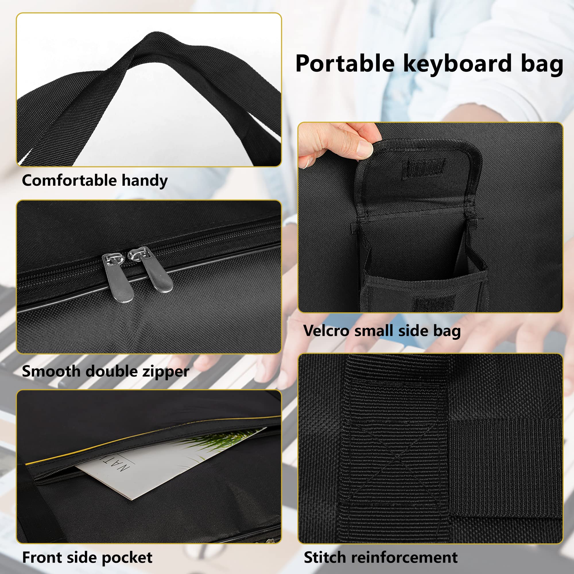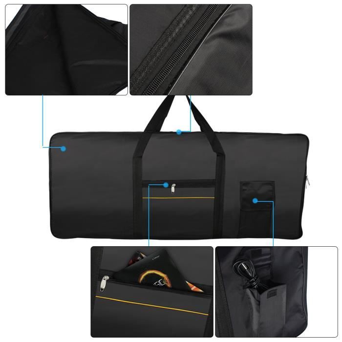 Spécifications : *Nom de la pièce : sac pour clavier électronique *Matériau : tissu Oxford 420D *Taille : environ 99x40x13cm *Couleur : Noir Contenu du colis... Le sac de clavier de piano d'orgue électronique est une combinaison de praticité et d'apparence élégante Le produit convient au clavier électrique à 61 touches, durable pour une longue durée de vie Piano Portable Housse Clavier 61 Touches Sac De Piano électronique En Tissu Oxford Sac De Clavier 61 Touches Facile A 396522 étui Clavier électronique Le tissu intérieur doux peut protéger votre clavier électronique des rayures, de la poussière, etc. Fabriqué en tissu Oxford 210D imperméable de haute qualité pour éviter la poussière, les poils d'animaux, les débris et même le soleil chaud. Il est doux et n'exerce aucune pression sur votre clavier. La housse anti-poussière est durable, flexible et respirante, parfaite pour la plupart des claviers à 61 touches Spécification: Type d'article: sac de clavier à 61 touches Couleur: noir Matériel: tissu Oxford Liste des packages: 1 x sac de clavier à 61 touches Ruibo Housse de Transport pour Clavier 61 Touches - Portable et Durable