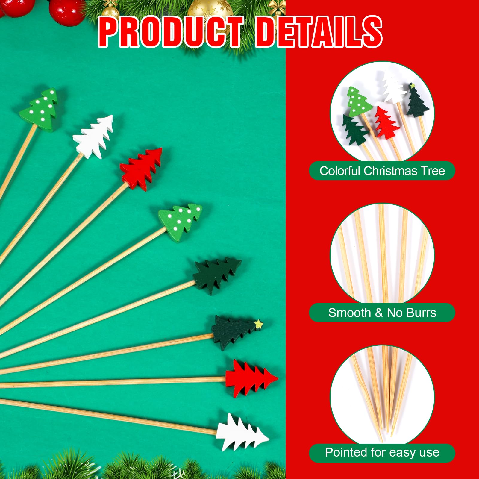 Utilisation polyvalente : qu'il s'agisse de décorations pour les fêtes d'anniversaire de Noël, les mariages, les fêtes de Noël, les fêtes à la maison ou les fêtes de piscine d'été, ces piques à cocktail sont l'accessoire idéal pour décorer et rendre festive tout type de fête. Brochettes Alimentaires Thème Noël Décoration Noël Apéritif 100 Pics à Cocktail Sapin Noël - 13.2cm - Décoration Apéritif, Cupcakes Pic Apéritif Noel Brochettes Amuse-bouches Festives Spécification : Matériel: bois Longueur : 12 cm. 20 pics de fête sans marque 18 CM - brochettes - Fête |parapluies à glace bâtonnets à Design varié : vous recevrez 100 brochettes à cocktail faites à la main dans 5 designs différents, chacun mesure 12 cm de long, ce qui ajoutera une touche festive à n'importe quel plat et impressionnera vos invités. Longueur parfaite : avec une longueur de 12 cm, les pics alimentaires de Noël sont parfaits pour les cocktails, les apéritifs, les fruits, les desserts, les sandwichs et plus encore, ce qui les rend polyvalents. WZYTEU Lot de 200 brochettes à cocktail en bois 12 c pour sandwich, desserts, boissons... Idéales pour les fêtes de Noël, les fêtes d'anniversaire ou tout autre événement festif, nos brochettes à cocktail sont parfaites pour décorer vos créations culinaires tout en améliorant l'ambiance de votre fête. Avec 100 pièces dans 5 designs différents, ces brochettes en bois offrent un moyen élégant de présenter les amuse-bouches, les fruits et les desserts. Cette décoration de cocktail est idéale pour les fêtes. Tablecraft Baml35 Lot 100 Pics À Brochettes Bambou 9 - Maison Convient pour Noël, les fêtes d'anniversaire et les décorations de fête de mariage. Il suffit de placer les autocollants à cocktail dans des gâteaux, des muffins, de la glace, du fromage ou des fruits pour ajouter du charme supplémentaire et une touche festive à vos plats.