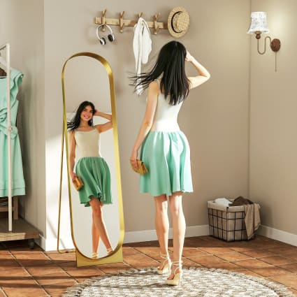Aucun assemblage fastidieux n'est requis. Miroir Arche Design Moderne WOLIBEER Miroir Sur Pied 165 X 60 Cm, Grand Miroir Arqué En Pleine Miroir Design Arche Aluminium Installation flexible Des crochets préinstallés et une base en forme de U permettent une installation suspendue, inclinée ou debout et garantissent une mise en place facile. Description du produit · Couleur : Noir d'encre · Matériaux : Verre trempé, alliage d'aluminium · Dimensions : 160 x 50 cm (L x L) · Poids : 6,4 kg Miroir sur Pied & Mural -- Cette polyvalence exceptionnelle vous permet de l'utiliser librement comme miroir sur pied stable dans votre chambre ou de le fixer facilement au mur en tant que miroir mural pour économiser l'espace dans votre entrée ou salon. Design Arche & Cadre Aluminium -- L'arche gracieuse de ce grand miroir mural apporte une touche d'élégance moderne et d'esthétique unique à votre décoration intérieure. Miroir Intégral, 160 x 50 cm, Miroir Arqué sur Pied, à Poser au Sol... Même en cas de choc accidentel, il résiste aux éclats et aux brisures, offrant une tranquillité d'esprit absolue, surtout dans les maisons avec des enfants en bas âge ou des animaux de compagnie énergiques. Cadre noir Esthétique du design : minimalisme moderne, style industriel Ambiance principale : sobre, assurée, structurée, sereine Clients cibles : les minimalistes à la recherche de classiques intemporels et de pièces polyvalentes Son cadre aluminium léger mais ultra-résistant est anti-corrosion et assure une durabilité exceptionnelle, tout en agrandissant visuellement l'espace de la pièce où vous le placez. Heilmetz Grand Miroir Mural, Miroir Sur Pied 160 X 37 Cm, Miroir De Sol Miroir Style Industriel Moderne Cadre Chrome 90873655 Cadre doré Style de design : Art déco, luxe moderne Ambiance principale : opulent, chaleureux, glamour, spectaculaire Clients idéaux : personnes exigeantes qui accordent de l'importance aux détails décoratifs et souhaitent embellir leur intérieur avec des objets d'ameublement remarquables Ce miroir rectangulaire mural de grande taille illumine et agrandit visuellement n'importe quelle pièce, qu'il s'agisse de votre chambre à coucher, de votre salon ou d'un couloir étroit, créant une atmosphère ouverte et accueillante.