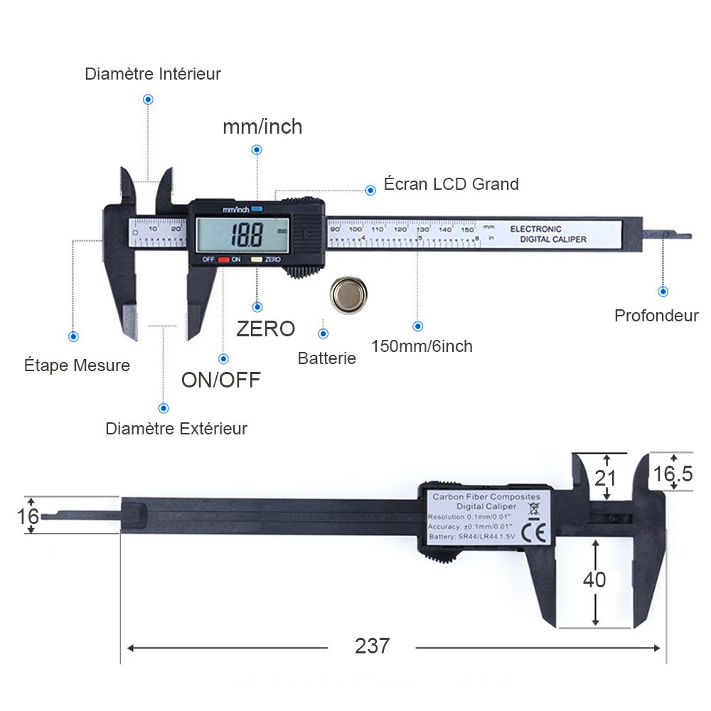 Pied à Coulisse Manuel Pied à Coulisse à Vernier Ouvert, Pied à Coulisse à Vernier En Acier Au Carbone 0-150 MM Mesure Industrielle De Haute Précision | Leroy Merlin Compas Pointe Seche Les étriers à vernier sont utilisés pour mesurer la longueur, la profondeur, l'épaisseur, le diamètre intérieur et extérieur des cylindres.Le pied à coulisse est fabriqué en acier au carbone, solide et durable.Pied à coulisse de haute précision, facile et pratique à utiliser.La plage de mesure est de 150 mm, la précision de mesure est jusqu'à 0,02 mm.Processus d'échelle exquis... Pieds à Coulisse Étrier Vernier Plastique 150mm - Outil Mesure Précision 0.1mm Jaune étrier Professionnel Jaune Et la est chromée, ce qui a une bonne résistance à la corrosion et est difficile à rouiller. Pied à Coulisse Intérieur Vernier en Acier au Carbone 0-150mm Outil de Mesure Règle Caliper Vernier : : Commerce, Industrie et ScienceIl s'agit du prix le plus bas du produit sur au cours des 30 derniers jours avant l'application de la réduction de prix. En plus du Prix récent le plus bas, vous pourrez être amené à voir le Prix conseillé ou l'Ancien prix uniquement... 【CONVIENT À】La règle à coulisse est compacte, portable et adaptée à une utilisation en extérieur. 【BONNE RÉSISTANCE À L'USURE】 Tout l'étrier est trempé et présente une bonne résistance à l'usure. 【DIAMÈTRE INTÉRIEUR】Le vernier peut mesurer le diamètre intérieur de l'objet avec précision. Spécification: Matériel: acier au carbone Mode d'affichage: lecture vernier Plage de mesure: 0-150mm / 0-5., 9in Valeur de lecture: 0., 02mm Poids: 396g / 14., 0oz Liste de colis: 1 * pied à coulisse Remarque: La couleur réelle du produit peut différer de la photo en raison de la lumière.