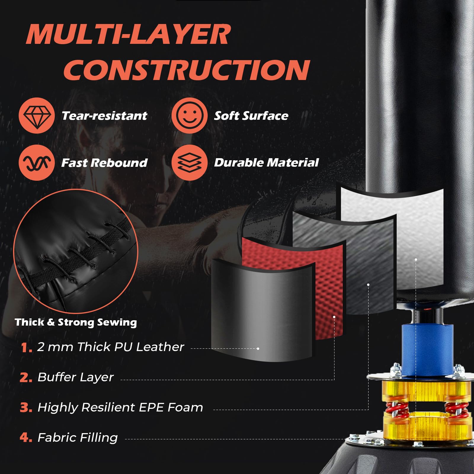 De plus, les balles de vitesse sont très robustes (nombre de bobines : 8, diamètre du ressort : 20 mm, épaisseur : 17 mm). Station Entraînement Réglable Stable GYMAX Sac De Frappe Sur Pied, Punching Ball, Sac De Boxe Avec Barre Rotative, Équipement De Boxe Avec Hauteur Réglable, Base Remplissable Barre Rotative 360 Degrés À Propos de l'Article Notre équipement multifonctionnel de vitesse de boxe 4 en 1 est composé de 2 balles de vitesse, 1 barre rotative à 360° et 1 sac de boxe, vous offrant diverses options d’entraînement. Hit & Slide - Sac de frappe - Entraîneur de réflexes - Capacité de réaction - Barre # 𝐇𝐚𝐮𝐭𝐞𝐮𝐫 𝐑é𝐠𝐥𝐚𝐛𝐥𝐞 # Avec une hauteur réglable sur 6 niveaux, le support de sac de boxe autoportant convient aux personnes de différentes tailles. # 𝐁𝐚𝐬𝐞 𝐑𝐞𝐦𝐩𝐥𝐢𝐬𝐬𝐚𝐛𝐥𝐞 𝐒𝐭𝐚𝐛𝐥𝐞 # Le support de boxe multifonctionnel dispose d'une base lestée rechargeable équipée de 12 ventouses premium qui s'adaptent à différents types de terrain. Ball and pump - Sac de frappe pour balles réflexes, boxe, sport, boxe, boxe, Dodge speed ball... Traits Dominants 2 Balles de vitesse avec ressorts de rebond à 90° pour un entraînement d'agilité et de précision Barre rotative à 360° et sac de boxe durable pour la pratique de la coordination Hauteur réglable sur 6 niveaux répond aux différents besoins de toute la famille Matériaux multicouches de haute qualité pour une durée de service plus longue Système à double roulement assure une meilleure robustesse et un bruit réduit Système de suspension unique avec ressort 4 roulettes motrices pour une plus grande durabilité Base élargie avec ventouses haut de gamme contribuant à la stabilité globale Ajoutez de l'eau ou du sable à la base pour une stabilité accrue Idéal pour l'entraînement de vitesse, la mise en forme, le relâchement de la pression et bien plus encore Expédié en 2 colis pouvant arriver à des moments différents (Cette phrase est uniquement destinée à la plate-forme cible) Infos Détaillées Couleur : Noir Matériau : Métal, PE, Simili-cuir Dimension de la base : 50 x 50 x 34 cm (L x l x H) Plage de hauteur globale réglable : 173-213 cm Poids net : 6,4 kg Le Colis Comprend 1 x Entraîneur de boxe 1 x Mode d'emploi Les ressorts de haute qualité entraînent la précision et l’agilité. Vous pouvez ajouter 75 kg de sable ou 42 L d'eau pour augmenter la stabilité globale. GYMAX Sac De Frappe Pour Adultes Et Adolescents, Ensemble D Autoportant Réfléchissante Les matériaux à haute résistance promettent une utilisation durable et la base élargie avec ventouses peut être remplie de sable ou d'eau afin d'améliorer la stabilité. # 𝐂𝐨𝐧𝐜𝐞𝐩𝐭𝐢𝐨𝐧 𝐃𝐮𝐫𝐚𝐛𝐥𝐞 𝐞𝐭 𝐑𝐨𝐛𝐮𝐬𝐭𝐞 # Composé d'un noyau rempli de tissu, d'une mousse EPE haute densité, d'une couche tampon de force et d'une surface résistante aux déchirures, le sac de boxe résiste à l'épreuve du temps.