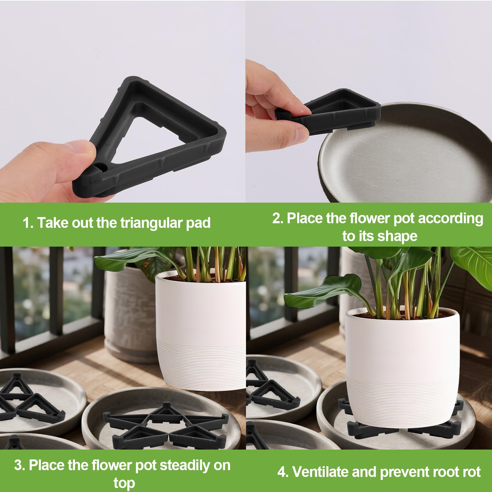 Support Pots Surélevé Lot De 12 Pieds De Pot De Fleurs-Plantes, Support De Pot De Fleur Pieds Creux Pour Plantes Durable et réutilisable : fabriqués à partir de matériau haute résistance, ces rehausseurs de pot résistent à l'usure, à la déformation et aux charges... Trywise 24 Pièces Soucoupe Pour Pot Supports Triangulaires Respirants Pour Pots De Fleurs Supports Invisibles Pour Interieur Et Exterieur Grand9cm 91911084 Empilable et réglable : utilisez individuellement ou combinez plusieurs rehausseurs pour créer des hauteurs personnalisées, gardant les pots à niveau même sur des surfaces inégales pour un drainage optimal des plantes. Dessous de plat invisibles pour pot de fleurs triangulaires respirants... Grand ensemble de 24 pièces : comprend beaucoup de rehausseurs de taille universelle pour soutenir différentes formes et tailles de pots, offrant un excellent rapport qualité/prix pour plusieurs arrangements de plantes. Contenu de l'emballage : 24 rehausseurs triangulaires pour pots de fleurs. Durable et réutilisable : fabriqués à partir de matériau haute résistance, ces rehausseurs de pot résistent à l'usure, à la déformation et aux charges lourdes, assurant une stabilité durable pour une utilisation en intérieur et en extérieur. Dimensions : 7 x 5,5 x 1,5 cm.