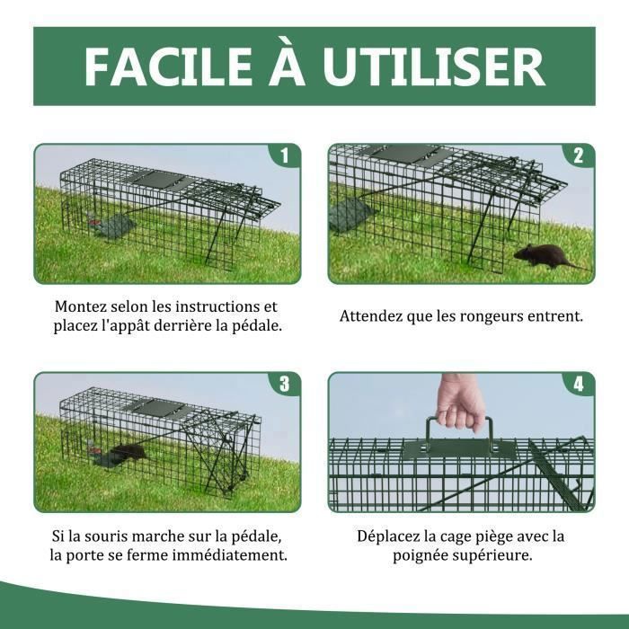 Lot De 6 Piege A Souris Vivante, Piège De Capture, Piege A Souris Vivante Piege De Capture Piege A Rat Cage Reutilisable Pour Interieur Exterieur Jardin Maison Cuisin 86292181 MÉCANISME DE DÉCLENCHEMENT HAUTE SENSIBILITÉ- Lorsque la souris entre dans la cage piège à rat et les pas sur la pédale pour manger des appâts, le mécanisme se déclenche immédiatement et la porte se verrouille automatiquement. Attrape Souris Piege A Souris 2 X Vivante, Piege De Capture, Piege A Rat Cage Cage Rongeur Cage Capture Souris Réutilisable cette cage est conçue pour être réutilisée maintes fois, ce qui en fait une solution écologique et économique pour la lutte contre les rats, à l'intérieur comme à l'extérieur. AJW-souricière Vivante,pièges à Souris piège à Cage de réutilisable et Vivant piège à Rat avec... 3X Set respectueux des Animaux - Piège à Souris eois Vivant - Pièges à Souris - Piège Vivant... Pas besoin de colles ou de poisons, ce piège souris est totalement sûr pour les enfants et les animaux domestiques, garantissant une solution sans danger pour votre foyer. Laissez-vous toujours capturer des souris avec succès. EFFICACE-Efficace pour capturer des rats, des souris et d'autres rongeurs de taille similaire. RÉUTILISABLE-La cage de capture souris est fabriqué d'acier galvanisé robuste, avec un treillis métallique très résistant qui ne sera pas mordu par les dents de ces rongeurs. NON-TOXIQUE ET SÛR-Ne tue ni ne blesse les animaux capturés. Ce piège souris est un attrape souris professionnel conçu pour capturer efficacement les souris, les rats, les mulots, les loirs et autres rongeurs de taille similaire.