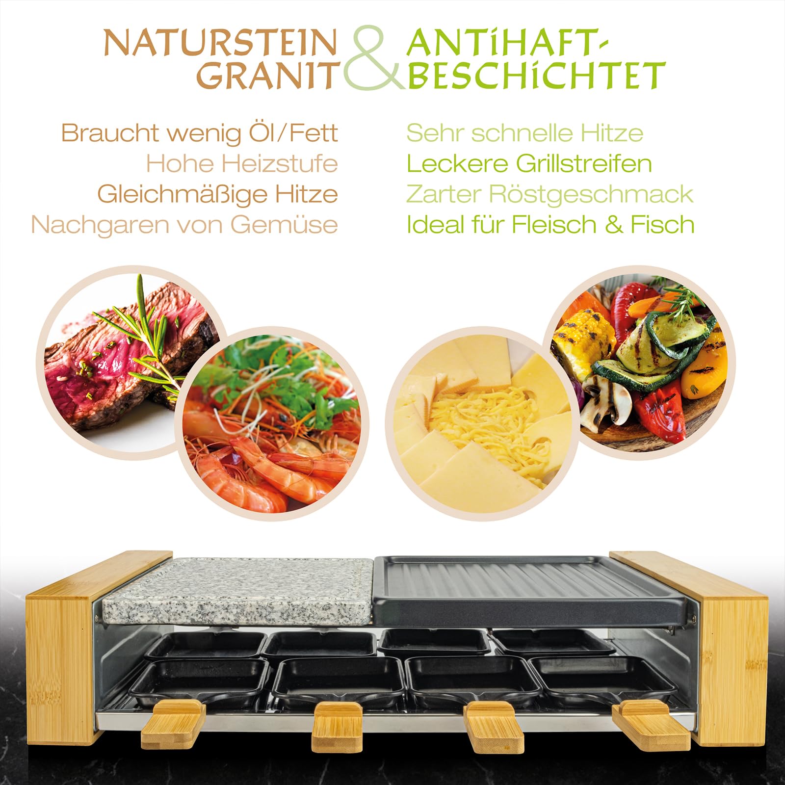 Pierrade SG 4195 - Gril de Table / Raclette - Pierre Naturelle - 1700W - 48,5 x 24 cm - 2 à 10 Pers. - Sans PFAS Appareil Raclette ProfiCook® 2 En 1 Raclette-Grill | 10 Personnes | Plaque En Pierre Et Plaque De Grill | Revêtement Antiadhésif | Thermostat Réglable En Continu | 1700 Watts | Acier Inoxydable | PC-RG 1144 Appareil A Raclette Il y a 22 heures · Découvrez notre test de l'appareil 2-en-1 h.Koenig RP4 combinant raclette et plancha grill pour des moments conviviaux et savoureux en famille ou entre amis Description du produit 2 en 1 - Raclette-Grill avec pierre chaude et plaque réversible Pour griller et gratiner Plaque réversible - Surface de cuisson combinée pour griller du poisson (surface lisse) ou de la viande (rainures extra profondes pour un motif de grillage intensif) Pierre de grill naturelle pour une cuisson saine et faible en matières grasses Surface de cuisson totale : environ 48,5 x 24 cm (2x environ 24 x 24 cm) 10 poêlons, 10 spatules en bois Poignées en acier inoxydable (isolantes thermiquement) Thermostat réglable en continu Témoin lumineux (éclairé en bleu) Plaque de grill et poêlons avec revêtement antiadhésif (facile à nettoyer) 220-240 V, 50/60 Hz, 1700 W Contenu du coffret Appareil à raclette avec plaque réversible et pierre à griller naturelle 10 poêlons 10 spatules en bois. Découvrez la Raclette Volcan 2-en-1 ! Transformez vos soirées en festins mémorables avec ce grill innovant. Commandez maintenant vec une surface de cuisson totale d'environ 48,5 x 24 cm, le Raclette offre amplement d'espace pour griller une variété d'ingrédients délicieux. Que ce soit pour Noël, le réveillon du Nouvel An ou les anniversaires, le Raclette de ProfiCook est parfait pour des soirées conviviales en famille et entre amis